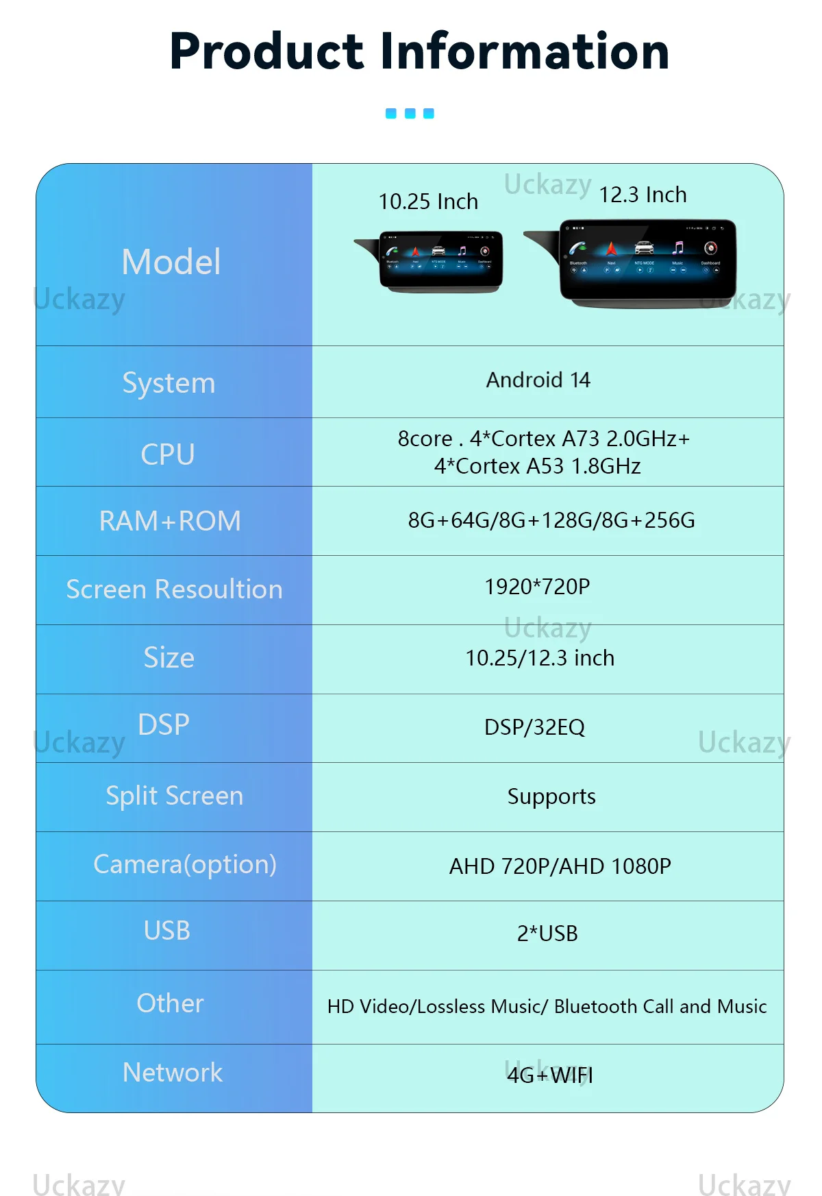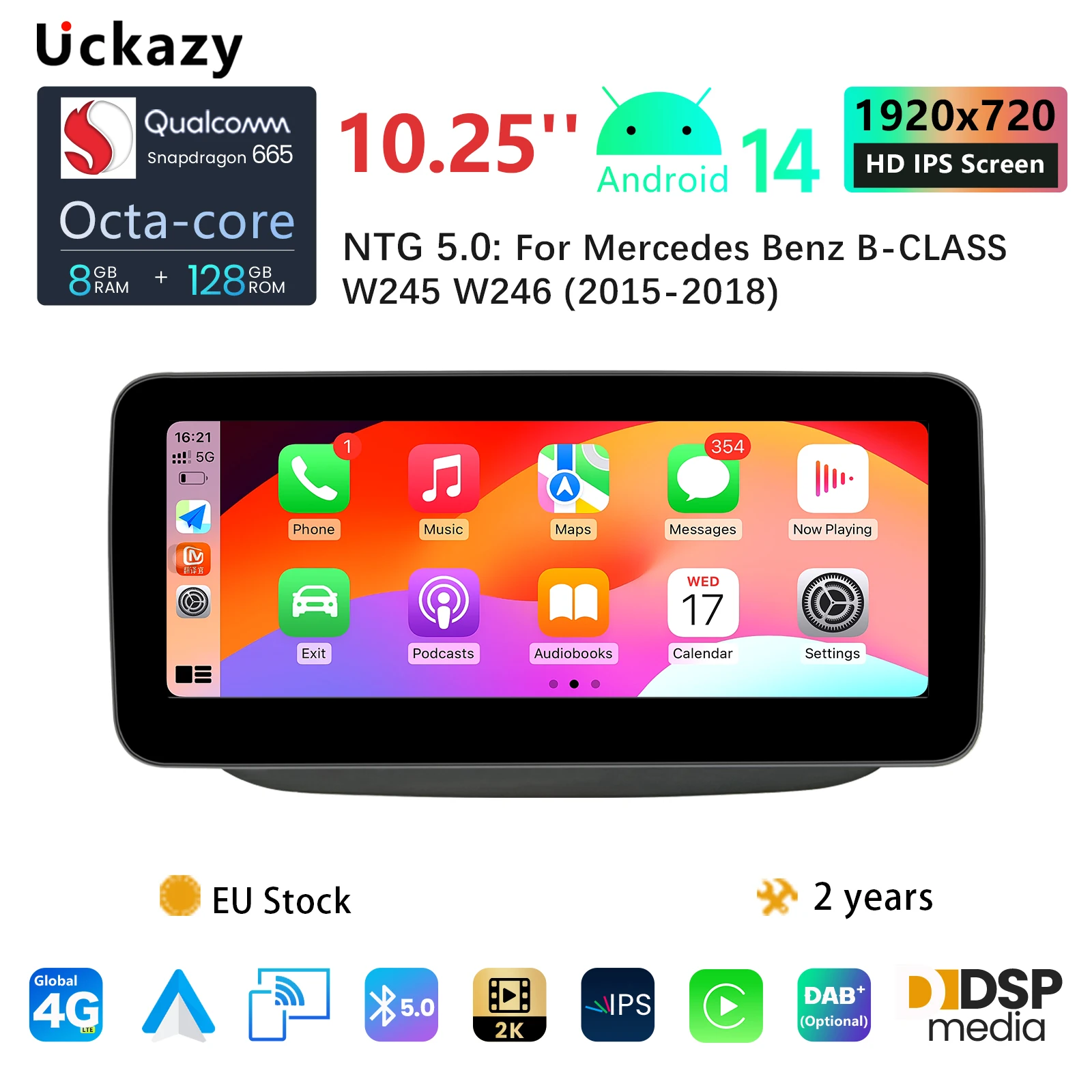 Android 14 Autoradio 10.25 Zoll für Mercedes-Benz W246 2012-2015 Multimedia Stereo GPS Navi Bildschirm 4g