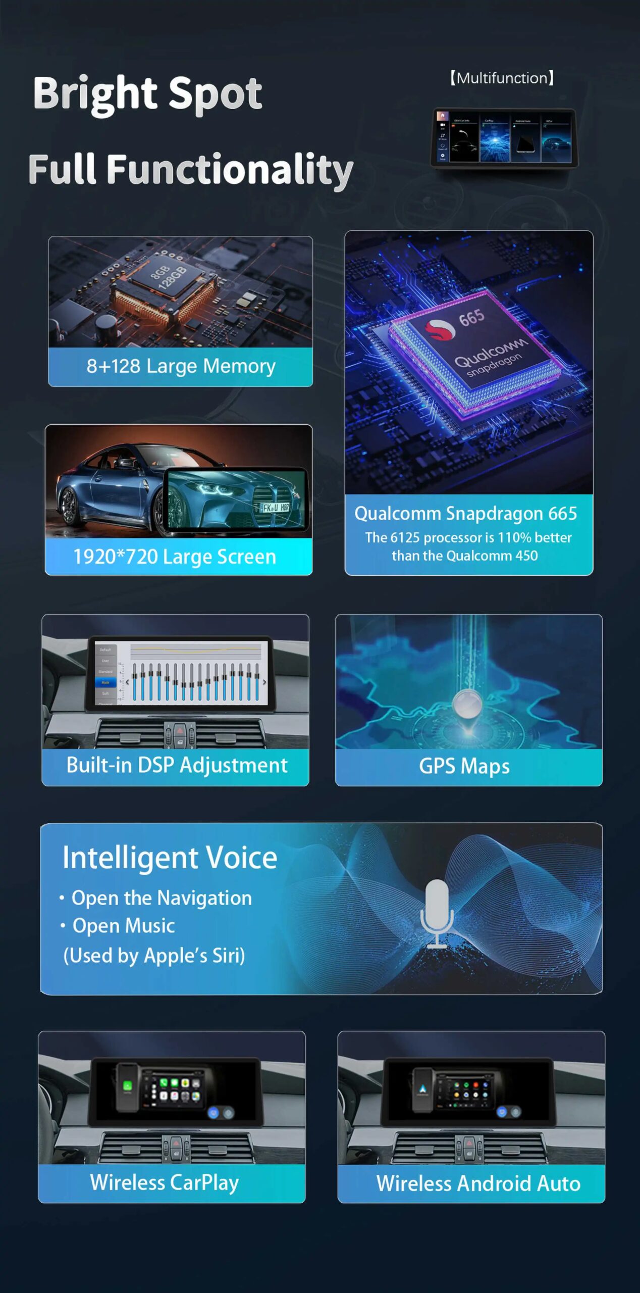 12.3 „Qualcomm Snapdragon Android 14 Wireless Carplay GPS-Radio für BMW 3er E90 E91 E92 E93 4G 2din Multimedia