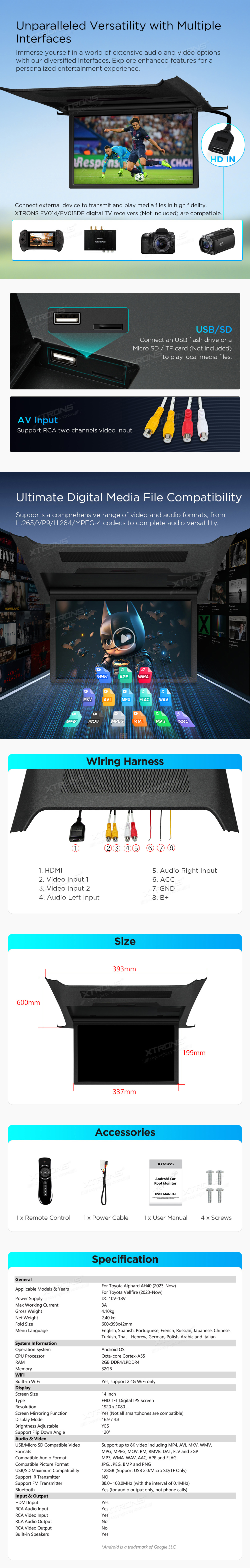 CM1440AF 14-Zoll-Android-Auto-Dachmonitor mit Touchscreen für Toyota Alphard Vellfire