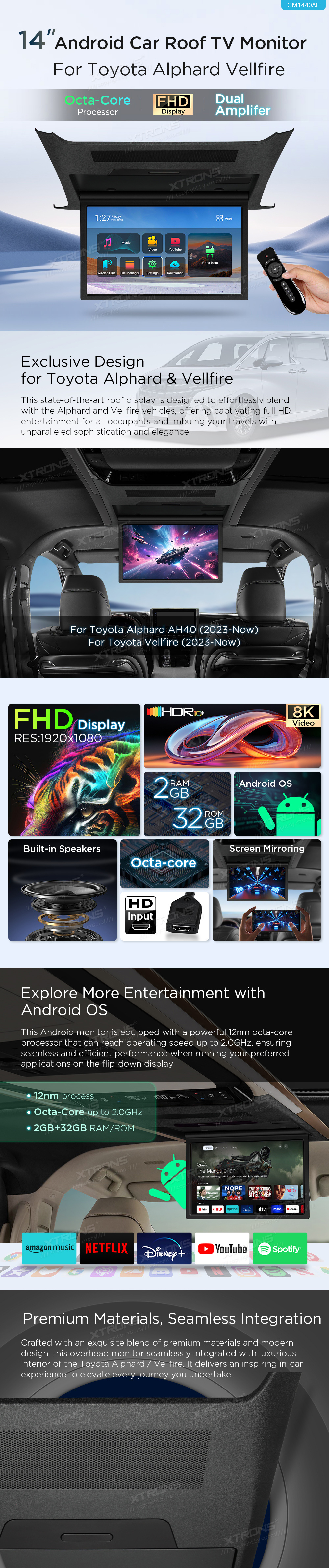 CM1440AF 14-Zoll-Android-Auto-Dachmonitor mit Touchscreen für Toyota Alphard Vellfire