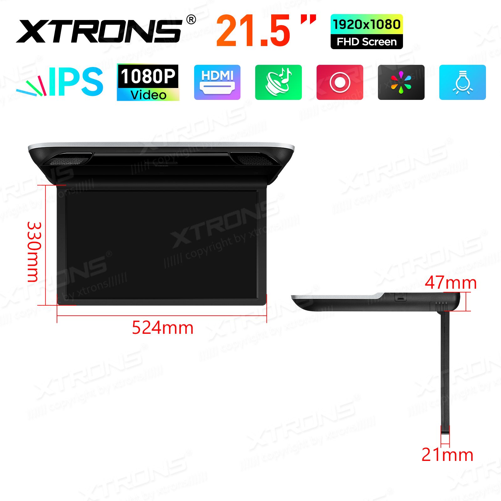 21,5-Zoll-Dachmonitor mit Stereolautsprechern und Multimedia-Eingang für Reisebusse / Busse / Wohnmobile