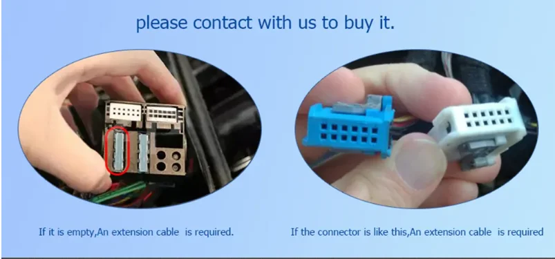 1. wenn Ihr Auto einen Glasfaser stecker hat (blaue und weiße Stecker),Sie müssen ein zusätzliches 6-Meter-Verlängerungskabel bestellen, um die Installation zu unterstützen. Bitte kontaktieren Sie uns, um das Verlängerung kabel zu kaufen.