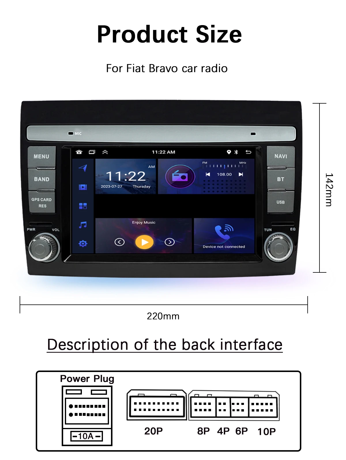 Android14 Autoradio Für Fiat/Bravo 2007-2012 Multimedia GPS Navi Stereo HeadUnit 4G