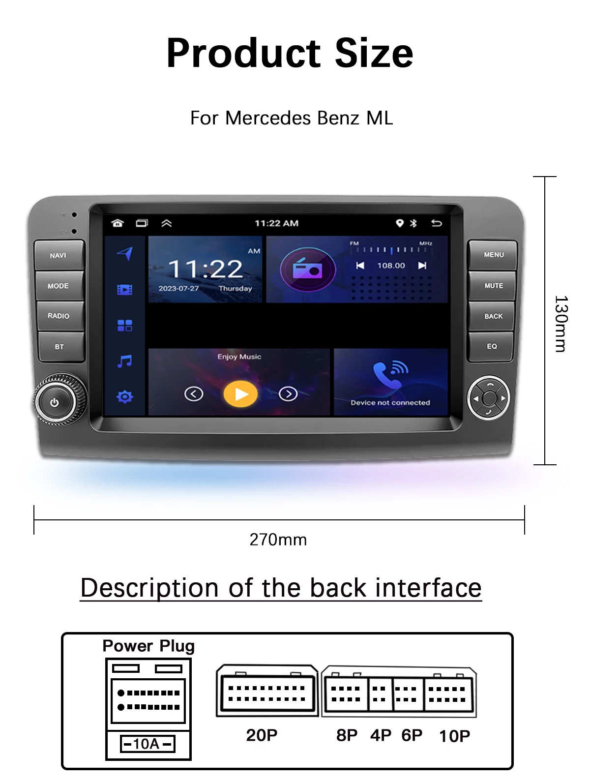 9 „2 Din Android 14 Auto Radio Für Mercedes Benz M KLASSE ML W164 X164 ML350 ML300 GL500 ML320 ML280 GL350 GL45 Bildschirm 4G Carplay
