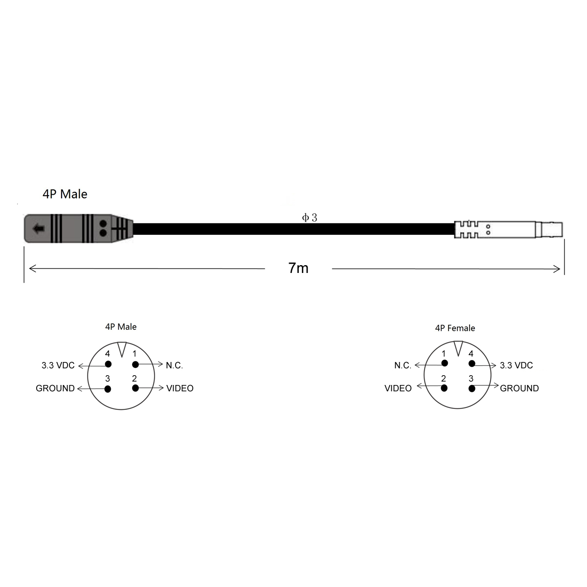 _AMPIRE Verlängerungskabel für KC801/802, KV802 Rückfahrkameras, 700cm