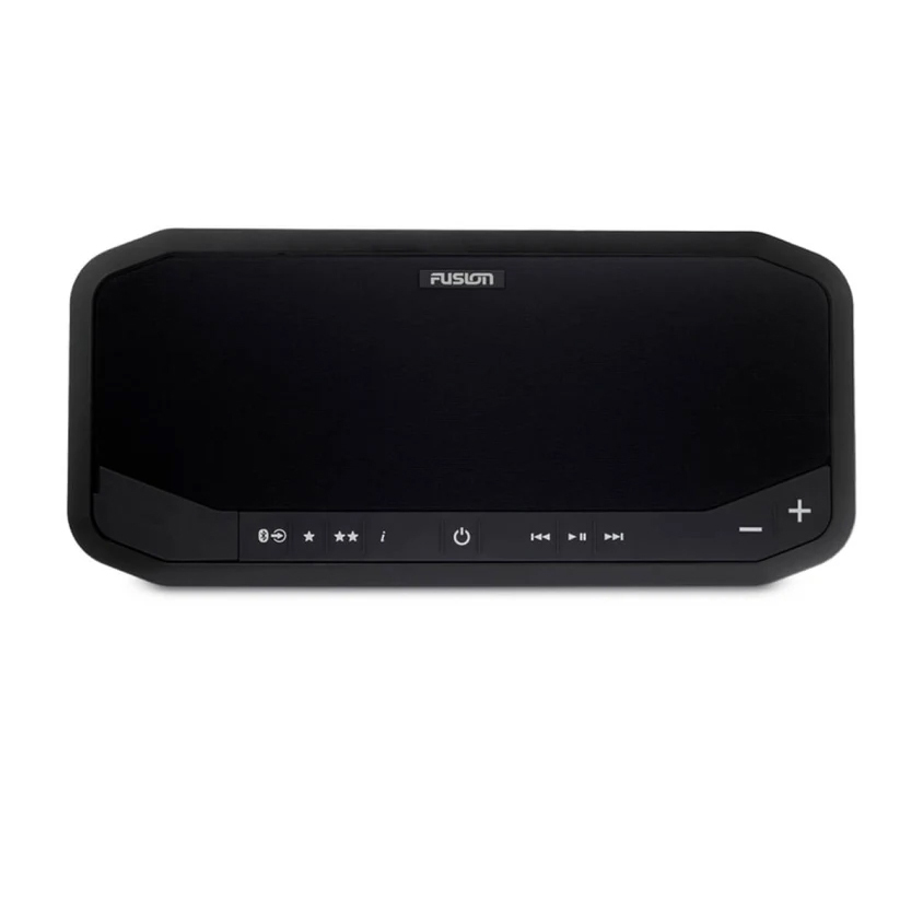 FUSION Panel-Stereo „Indoor“, eine Radio/Lautsprecherkombination zum Einbau in Boote oder Wohnmobile. Allgemein Größe (H x B x T): 155 x 344 x 50 mm Gewicht: 1,15 kg Spannungsversorgung: 10,8 bis 16 V Gleichspannung Betriebstemperatur: 0°C bis 50°C Stromstärke (maximal): 10 A Sicherung: 10 A Bluetooth-Reichweite: Bis zu 10 m Reichweite der ANT-Funktion: Bis zu 3 m Funkfrequenzen/-protokolle: Bluetooth, 2,4 GHz bei +9 dBm (nominal) ANT, 2,4 GHz bei +9 dBm (nominal) Sicherheitsabstand zum Kompass: 229 mm Radiofunktionen Integrierter Verstärker: Klasse D Spitzenleistung: 140 W Nennleistung: 43 W (eff.) x 2 bei 14,4 V Eingangsspannung < 1 % THD Integrierte digitale Signalverarbeitung: Ja Fusion-Link-Bedienung: Ja (Smartphone und Garmin-Uhr) Kabellose Bluetooth-Technologie: Ja Kabellose ANT-Technologie: Ja Sprache: Deutsch/Englisch/Französisch/Italienisch/Japanisch/Mandarin (Chinesisch)/Niederländisch/Spanisch Software-Updates: USB Garantie: 1 Jahr Quellen QuellenMW/UKW/Bluetooth/USB-Audio/iPhone/iPod/AUX (2x)/AOA Konnektivität AUX-Eingang: Zwei Cinch /RCA-Eingänge (AUX1, AUX2) USB 2.0: 1 USB Anschluss AM-/UKW-Radio: Ein Motorola-Antennenanschluss Line-Ausgang: 1 Cinch Ausgang (AUX) Lieferumfang Fusion® Panel-Stereo Abdeckung für Verschraubungen Sechs selbstschneidende 3,5-mm-Schrauben aus Edelstahl (Größe 6) Kabelbaum für die Stromversorgung Dokumentation