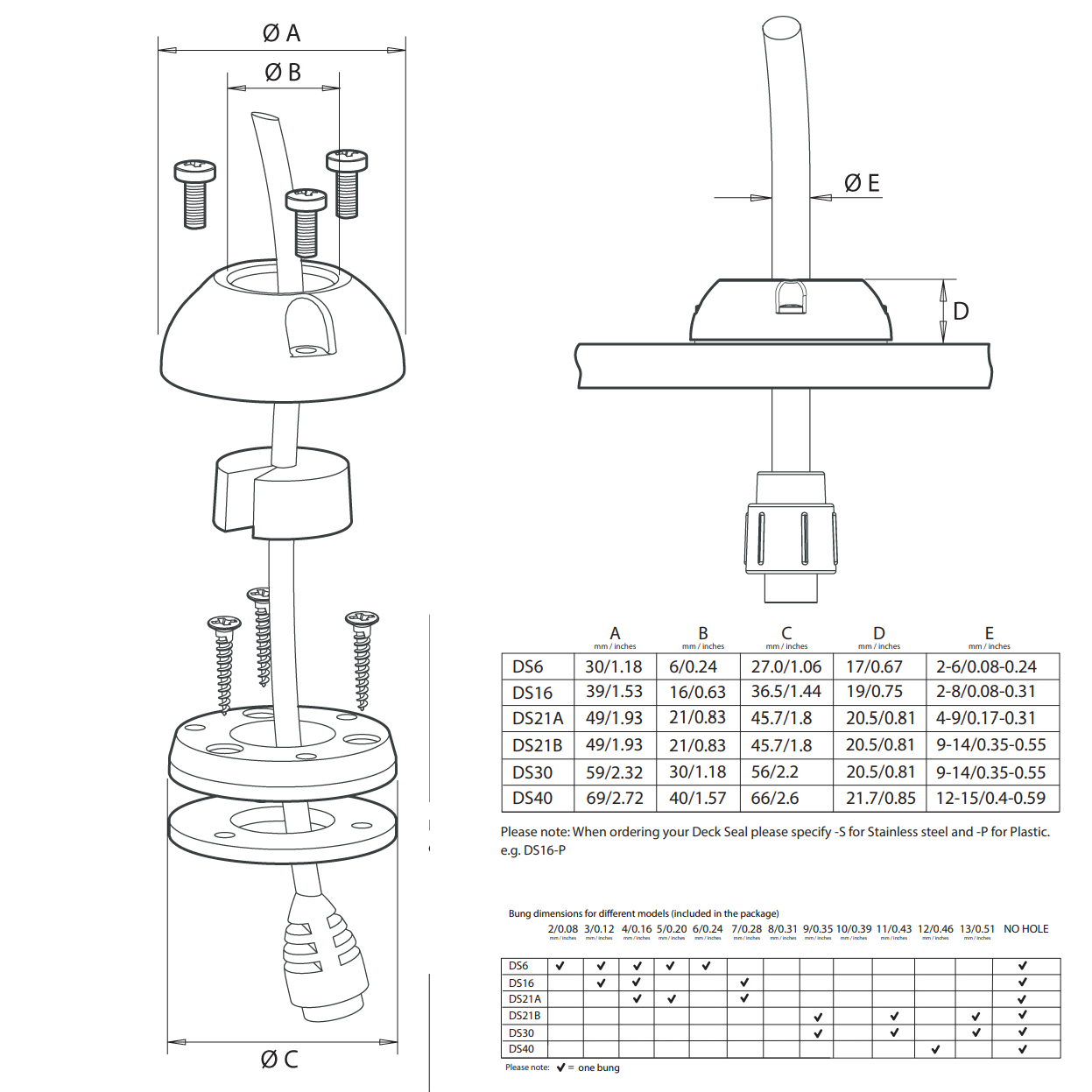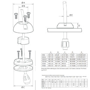 SCANSTRUT DS16-S IP68 Kabeldichtung für vertikale Einführung Für Kabel von 2-8 mm (0,08″-0,35″), Steckverbinder bis zu Ø16 mm (0,63″). Ein ästhetisches, kuppelförmiges Profil sorgt für ein stabiles, stoßfestes Design und unverlierbare Muttern im Sockel ermöglichen eine einfache Montage. Produkt-Informationen Wasserdichte Installation Der konische Spund bildet eine wasserdichte Dichtung. Alle Geräte werden mit einer geschlossenzelligen Bodendichtung geliefert – 100% wasserdicht. Alle Modelle wurden nach IP68 geprüft und zugelassen. Einfacher und zuverlässiger Einbau Unverlierbare Muttern sorgen für eine einfache Montage und ermöglichen auch eine zuverlässige Wiederholungsinstallation. Jede Einheit wird sowohl mit vorgebohrten als auch mit leeren Innendichtungen geliefert, um die Installation so einfach wie möglich zu gestalten. Keine Notwendigkeit, Kabelstecker zu entfernen Bei der Split-Seal-Option müssen während der Installation keine Stecker entfernt werden. Multifunktionale Kuppelform Das ästhetische, kuppelförmige Profil bietet ein stärkeres, stoßfestes Design und die äußere Kuppel bietet einen zusätzlichen Wasserschutz.