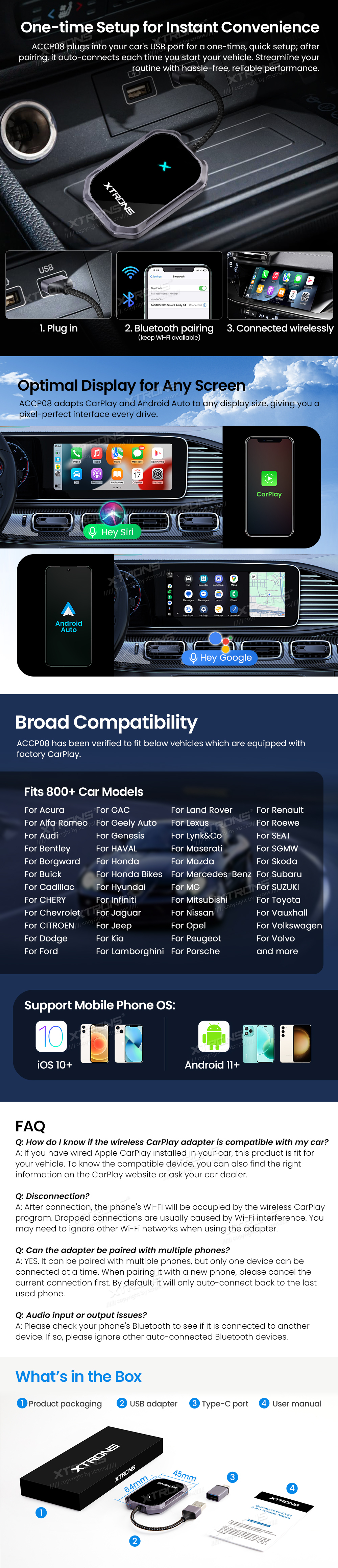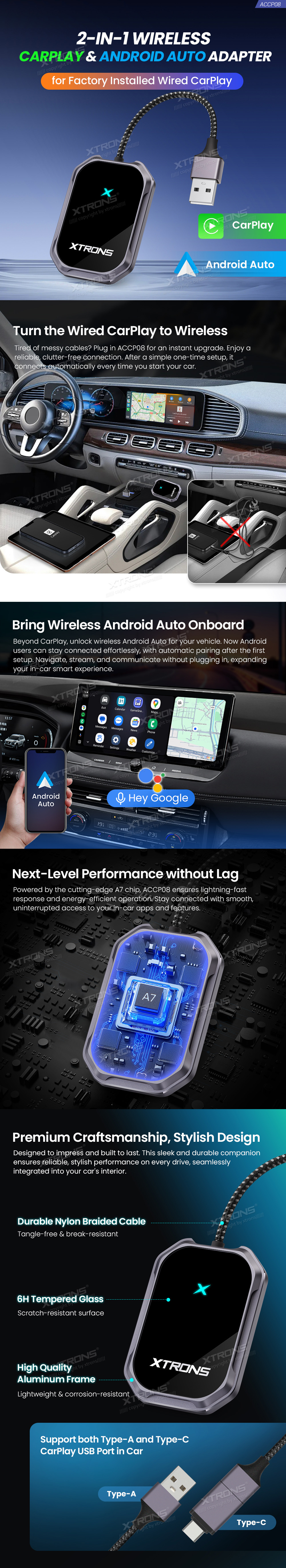 ACCP08 2-in-1-Adapter für kabelloses CarPlay und Android Auto für werkseitig installiertes kabelgebundenes CarPlay