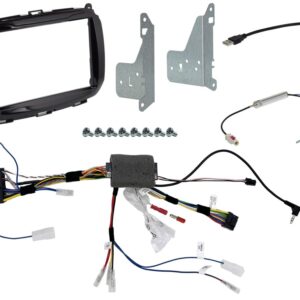 Dieses Einbauset wird mit allen erforderlichen Einbauteilen für die problemlose Montage geliefert, z. B. Kabelbaum, CAN-Bus-Schnittstelle, Montagehalterungen, Antennenadapter mit Phantomeinspeisung, Power-Quadlock-Adapter und Blende.