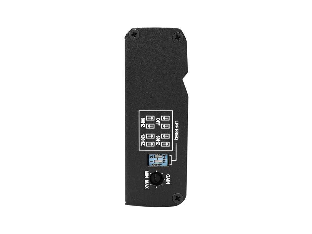 - Frequenzweiche: Wählbar LPF: Off/ 60 Hz/ 80 Hz/ 120 Hz (-24dB/Okt.)