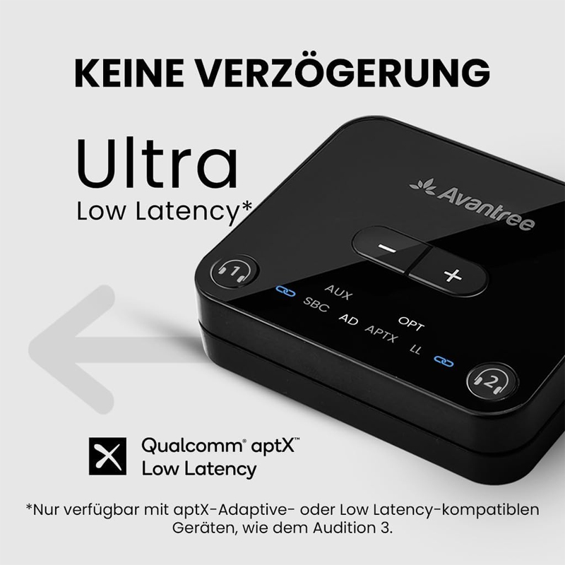Perfekt synchronisierte Audio- und Bildwiedergabe mit aptX-Adaptive- oder Low Latency-kompatiblen Kopfhörern.