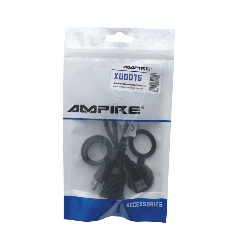 AMPIRE Doppel-USB-A Einbaubuchse mit 15cm Kabel