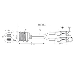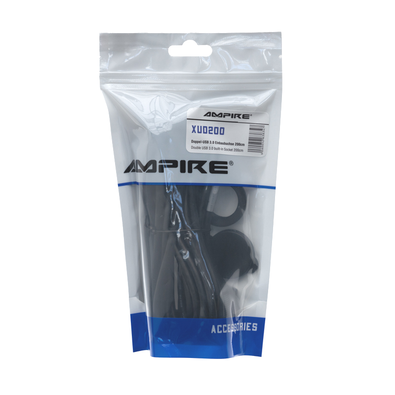 AMPIRE Doppel-USB-A Einbaubuchse mit 200cm Kabel