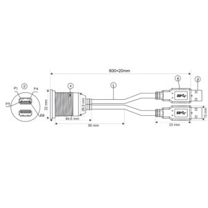 AMPIRE Doppel-USB-A Einbaubuchse mit 60cm Kabel