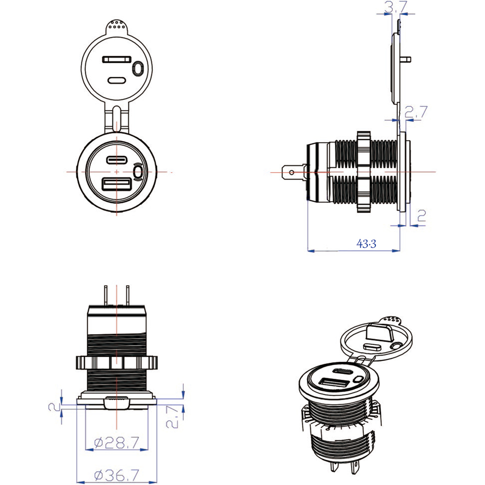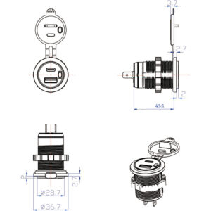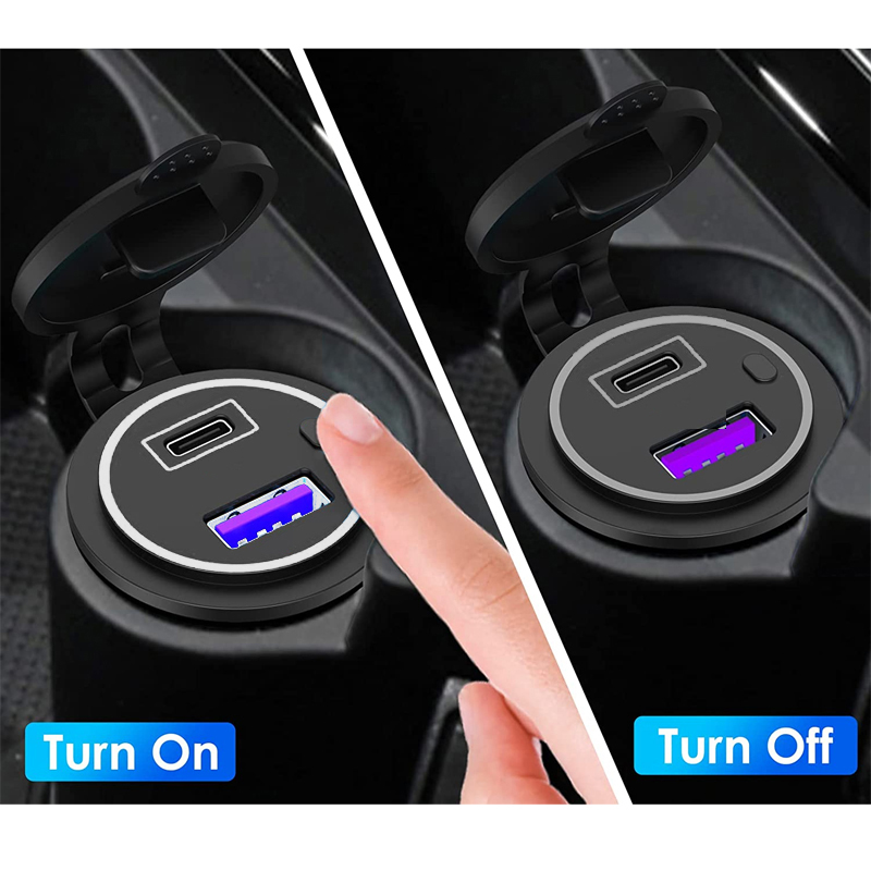 AMPIRE Dual-USB-C/USB-A Ladegerät 12/24V, 3.25A, beleuchtet, Schalter
