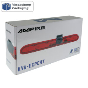 Hochauflösende AHD Rückfahrkamera KVA-EXPERT die anstelle vom werkseitigen Bremslichtglas montiert wird. KOMPATIBILITÄT – CITROEN Jumpy 3, Spacetourer ab 2016 – FIAT Scudo 3 ab 2021 – Opel Vivaro C ab 2019 – PEUGEOT Expert 3, Traveller, jeweils ab 2016 – TOYOTA ProAce 2, ProAce Verso jeweils ab 2016 Nur Fahrzeuge ohne Waschdüse im Bremslichtglas. TECHNISCHE DATEN – Videostandard AHD 1080P 25F – Bildsensor: GC2399 (FH8536H) – Bildsensorgröße 1/2.7 – Auflösung 1920×1080 Pixel – 3D Rauschunterdrückung – Sequential Scanning – Mindestbeleuchtung: 0,005 Lux – Signal/Rauschabstand >50dB – Automatischer Weißabgleich – Bildwiedergabe horizontal gespiegelt – Hilfslinien: eingeschaltet (ausschaltbar durch Kabelschlaufe trennen) – horizontaler Betrachtungswinkel 155° – vertikaler Betrachtungswinkel 100° – diagonaler Betrachtungswinkel 185° – bis 20° vertikal einstellbarer Kamerakopf – Schutzklasse IP69 wasserdicht – Betriebsspannung: 9-16 Volt DC – Stromverbrauch: max. 75mA – Betriebstemperatur: -20° bis 70°C – Farbe: schwarz – Kabellänge: 10 Meter mit 4-pol. MINI-DIN Steckern – E Zulassung E9-10R-05.1652 – CE Zulassung EN 55022: 2010; EN 61000-3-2:2006+A1:2009+A2:2009; EN61000-3-3:2008; EN 55024:2010 – FCC Zulassung ANSI C63.4-2003 LIEFERUMFANG Rückfahrkamera AK1037 Netzteil mit blauen Steckern AK1039 Mini-DIN Verlängerungskabel 10m mit blauen Steckern WICHTIGER HINWEIS Je nach Dachaufbau und installierter Anhängerkupplung vom Fahrzeug, kann man die Anhängerkupplung auf dem Monitor u.U. nicht sehen. HINWEIS ZUR BESTELLUNG Diese Kamera ist eine hochauflösende AHD-Kamera mit 1080P Auflösung und 25 Bildern/Sekunde. Diese Kamera kann ausschließlich an kompatiblen Monitoren, Autoradios oder Interfaces angeschlossen werden. Sollte der Kameraeingang an ihrem Monitor nur ein Videosignal in CVBS, FBAS oder NTSC darstellen können, ist diese AHD-Kamera ungeeignet und verwenden Sie dann die baugleiche CVBS-Kamera mit NTSC Videosignal. INSTALLATIONS HINWEIS Bei einigen Fahrzeugen ist ein optionales Relais notwendig um das Rückfahrsignal abzugreifen. Einige Fahrzeuge mit Heckklappen haben im Bremslichtglas die Waschdüse für die Heckscheibe integriert. Diese müßten Sie entweder im Fahrzeug bauseitig umbauen oder stilllegen. Das originale Leuchtmittel hinter der Kamera muss entfernt werden, da sonst das Kabel der Kamera bei langem Bremsen beschädigt werden könnte. WEITERE SUCHBEGRIFFE Expert, Traveller, Jumpy, ProAce, ProAce Verso, Spacetourer, expert, traveller, jumpy, proace, pro ace, proace verso, verso, spacetourer, opel, vivaro