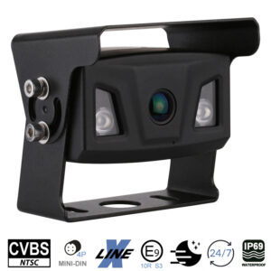 Die Ampire KVX300 Professional CVBS (NTSC) Kamera überzeugt durch seine sehr robuste Bauweise mit hochwertigem SONY CCD-Sensor und 160° diagonalem Blickwinkel. Die hohe Auflösung von 700 Zeilen besticht durch ein deutlich schärferes Bild mit hoher Detailtreue für noch mehr Sicherheit beim Rangieren. Für eine gute Sicht auch bei schlechten Lichtverhältnissen und insbesondere bei völliger Dunkelheit (0 Lux), ist die Kamera mit leistungsstarken Infrarot-LEDs ausgestattet. Die robuste Bauweise ermöglicht den dauerhaften Einsatz für extreme Bedingungen rund um die Uhr (24/7). Die Kamera erfüllt die höchste IP69K-Schutzklasse für Wasser- und Staubsichte. Ein Betrieb ist bei Temperaturen von -30 bis +70 °C möglich. Selbstverständlich durchläuft auch die Ampire Kamera unseren umfassenden und strengen Qualitätssicherungsprozess mit 100% Stückprüfungen in allen wesentlichen Fertigungsschritten. Die KVX300 eignet sich auch perfekt als Unterboden Kamera für Reisemobile um die Schmutzwasserabläufe genau über einen Bodeneinlass positionieren zu können. Die integrierte Infrarotbeleuchtung der Kamera gewährleistet auch bei absoluter Dunkelheit eine einwandfreie Sicht. TECHNISCHE DATEN – Bildwiedergabe gespiegelt – Bildsensor SONY 1/3″ NVP CCD – Auflösung 720×480 Pixel – diagonaler Betrachtungswinkel 160° – horizontaler Betrachtungswinkel 125° – vertikaler Betrachtungswinkel 90° – Bildformat: CVBS NTSC Farbe – 700 Zeilen Auflösung – Schutzklasse IP69K wasserdicht – Mindestbeleuchtung: 0 Lux – Infrarot-LEDs – Betriebsspannung: 9-16 Volt DC – Stromverbrauch: 85mA – Betriebstemperatur: -20° bis 70°C – Farbe: schwarz – Kabellänge: 10m Videokabel mit 4P MINI-DIN Steckern – E Zulassung E9-10R-05.1652 – CE Zulassung – Abmessungen: 94x74x50mm LIEFERUMFANG – Rückfahrkamera – AK1035 Netzteil – AK1034 Mini-DIN Verlängerungskabel 10m WEITERE SUCHBEGRIFFE KIP200-BLK
