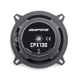 Bei diesem neuen AMPIRE 13cm Koaxiallautsprecher können klangverschlechternde Partialschwingungen durch seine patentierte CIPP-Cone Membrane nahezu ausgeschlossen werden. Außerdem konnte eine hörbar tiefere Basswiedergabe durch die Verwendung der ISD-Technologie erreicht werden. LIEFERUMFANG 2 Stück 130mm Koax-Lautsprecher TECHNISCHE DATEN – Nenndurchmesser 13cm/5,25″ – Fs 84Hz – VAS 6,1 Liter – Qts 0,87 – Qes 1,10 – Qms 4,03 – Re 3,6 Ohm – Z 4 Ohm – Le 0,55mH – SPL 90dB – Mms 6,4g – Xmax 3mm – Sd 88,2cm² – Vd 26,6cm³ – D 106mm – Pe 60/120 Watt RMS – Einbautiefe 54mm – Magnetdurchmesser 70mm – Überstand des Hochtöners: 5mm WEITERE SUCHBEGRIFFE: – ce130, CE130, cp130, CP130, CPX130, cpx130