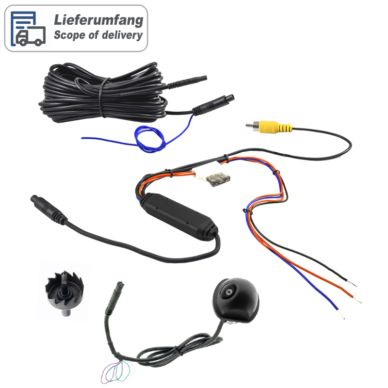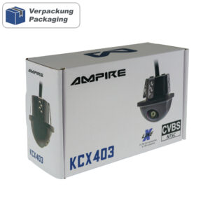 Die KCX403 Miniatur Weitwinkel-Unterbaukamera ist eine Rückfahrkamera mit grenzenlosen Einsatzbereich im Auto, Bus, Wohnmobil, LKW oder Anhänger. Das mattschwarze Kunststoffgehäuse ist besonders witterungsbeständig, IP69K wasserdicht und sehr stabil gefertigt. Wahlweise können zwei verschiedene Hilfslinien (schmal/breit) in das Videosignal eingeblendet werden die dem Betrachter ein besseres Einparken ermöglicht. Die Lieferung erfolgt komplett mit 8 Meter Verlängerungskabel mit hochwertigem Kupferlitzen. FEATURES – HD Weitwinkelkamera im Kunststoffgehäuse – Einsetzbar im 24/7 Dauerbetrieb – IP69K wasserdicht mit Edelstahlhalterung LIEFERUMFANG – Einbaukamera EK-KCX403 – 8m Verlängerungskabel AK1033 – Netzteil AK1035 – Bedienungsanleitung – 21mm Bohrer TECHNISCHE DATEN – 2 verschiedene Hilfslinien: werkseitig ausgeschaltet (einschaltbar) – schwarzmattes Kunststoff-Gehäuse mit Edelstahlbefestigung – Bildwiedergabe gespiegelt (einstellbar) – Bildwiedergabe 180° gedreht (einstellbar) – Bild-Sensortyp 1/4“ 1233 HD Color CMOS Low Light Sensor – Videosignal NTSC mit 60 Bilder/Sekunde – Auflösung Pixel 960H480V – DIN Schutzklasse IP69K – Auslösung 800 TV-Zeilen – Belichtung 1/50-60~1/15000 Sekunden – Rauschabstand =>46dB – Dynamik >>74dB – Lichtempfindlichkeit < 0.01 Lux/F1.2 - Ausgangssignal 1.0Vp-p, 75 OHM - Automatischer Weißabgleich - Automatische Videopegelanpassung - Betriebsspannung 12/24 Volt DC - Stromverbrauch 25-55mA - diagonaler Sichtwinkel 188° - horizontaler Sichtwinkel 155° - vertikaler Sichtwinkel 113° - Aufbau-Abmessungen Kamera 25.8x28.2mm und 20.8mm hoch - 21mm Bohrloch - Arbeitstemperatur -40°C bis +75°C - Lagertemperatur -60°C bis 105°C - E zertifiziert ZULASSUNGEN CE Directive of 2004/108/EC, EN55022: 2010, EN 55024: 2010 Report No. STR12058091E FCC Part 15B Report No. STR12058092E-3 WEITERE SUCHBEGRIFFE KC403-50, kc403-50 WICHTIGE EINBAUHINWEISE Der Kamerakopf ist nach der DIN Schutzklasse IP69K wasserdicht und muß nicht zusätzlich abgedichtet werden bei der Installation. Die Kameralinse ist aus Glas und zerbrechlich. Alle Metallteile sind aus Edelstahl. Edelstahl ist nicht rostend, da er eine schützende Chromoxidschicht besitzt. Diese Schicht kann jedoch beschädigt werden oder unter bestimmten Bedingungen abgebaut werden, was zu Flugrostbildung führen kann.