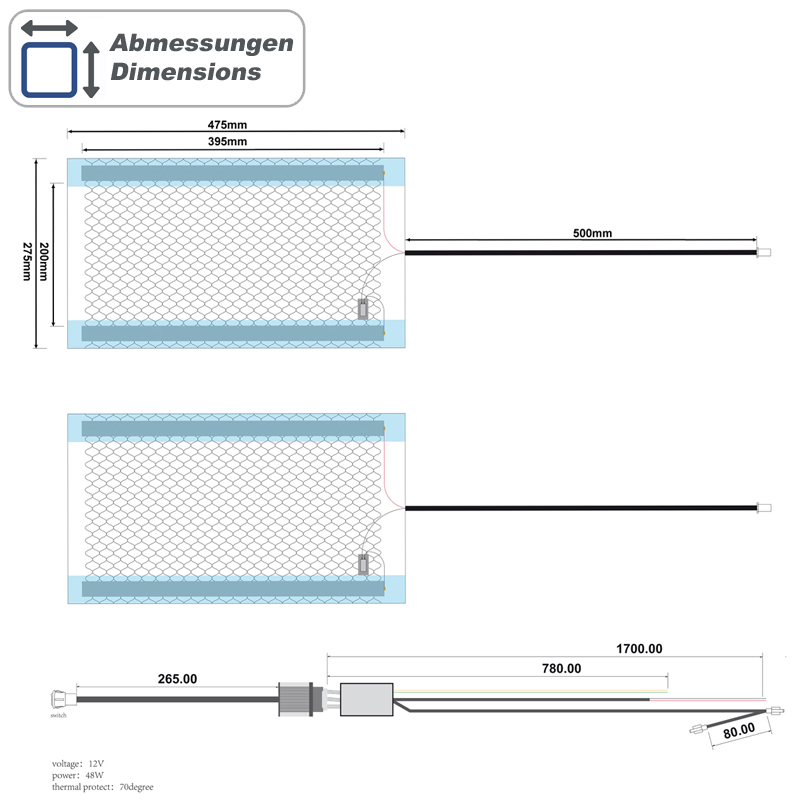 AMPIRE Sitzheizung, 2x 480x280mm, Taster 3-stufig, 12 Volt