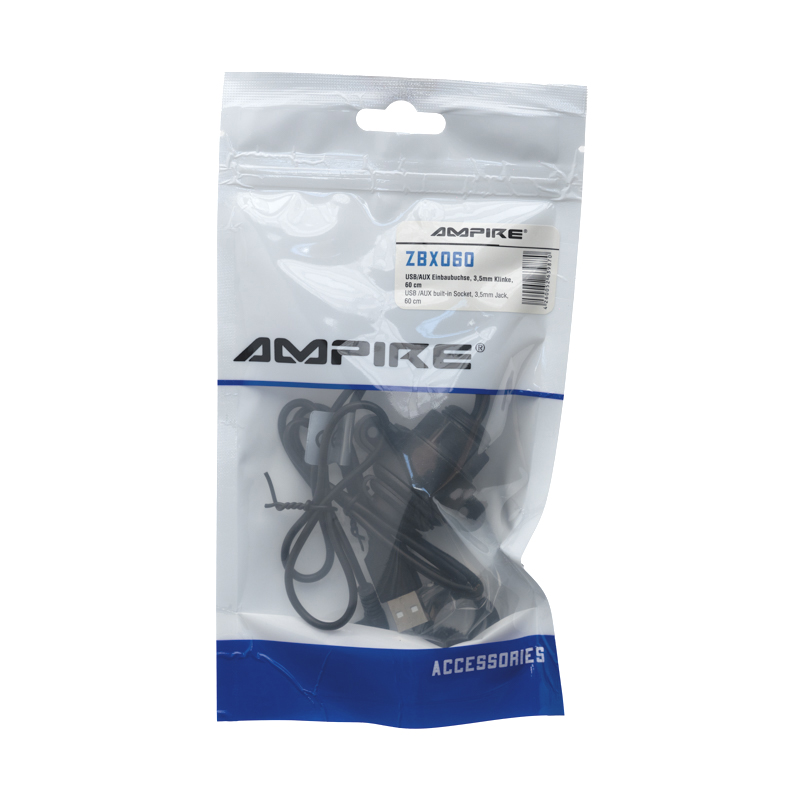 AMPIRE USB-A 2.0/AUX Einbaubuchse, 3.5mm Klinke, 60cm