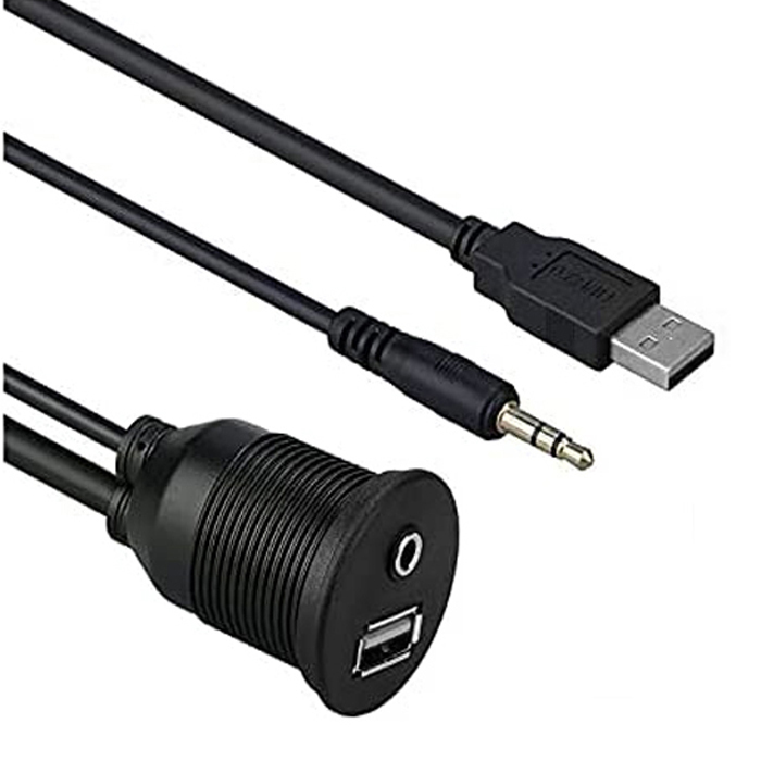 AMPIRE USB-A 2.0/AUX Einbaubuchse, 3.5mm Klinke, 60cm