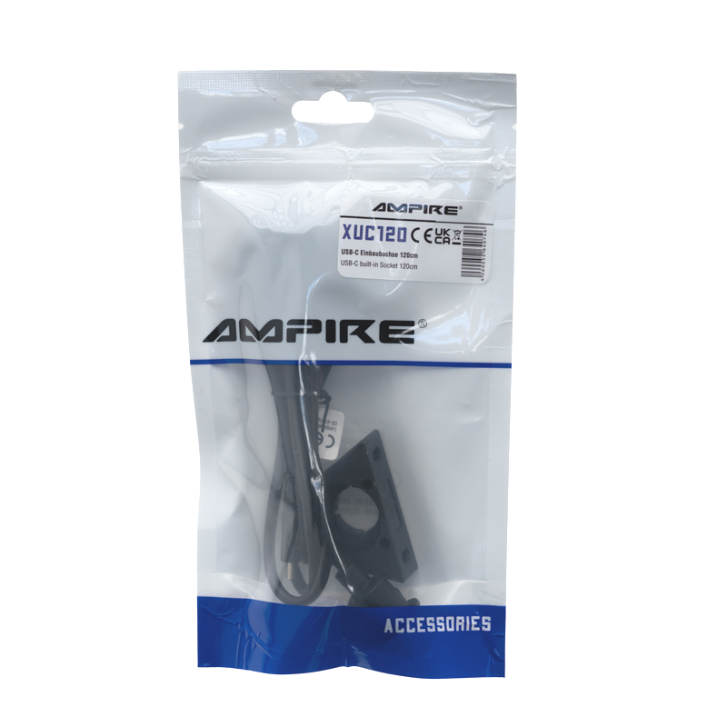 AMPIRE USB-C Einbaubuchse mit 120cm Kabel auf USB-C