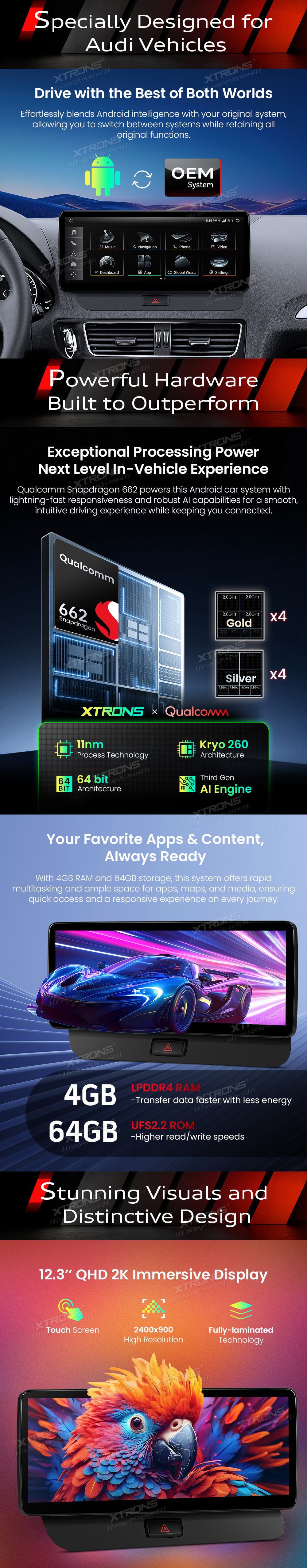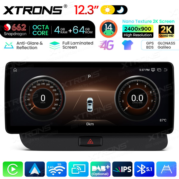 12,3 Zoll Autoradio mit Snapdragon 662 Octa-Core-Prozessor, 4 GB RAM und 64 GB Speicher, Android-Betriebssystem, Nano-Textur-2K-Display für Audi Q5 (2009–2017, Linkslenker)