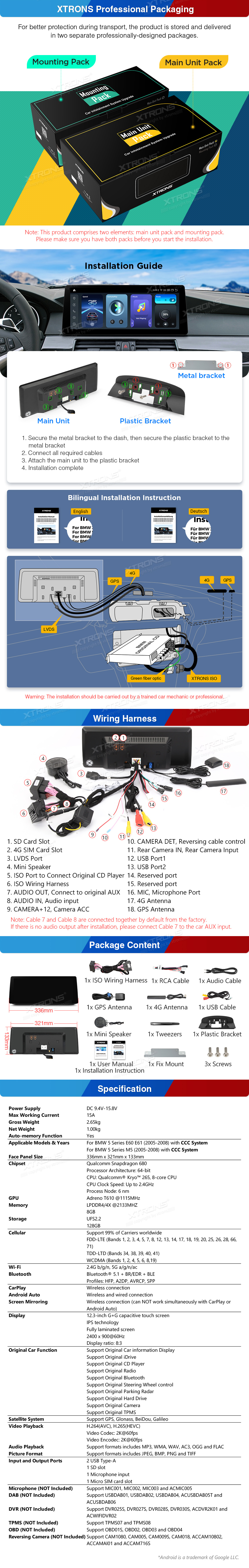 12,3 Zoll 8+128 GB Snapdragon 680 2K-Bildschirm Global 4G Android Autoradio für BMW 5er E60/E61/M5 CCC