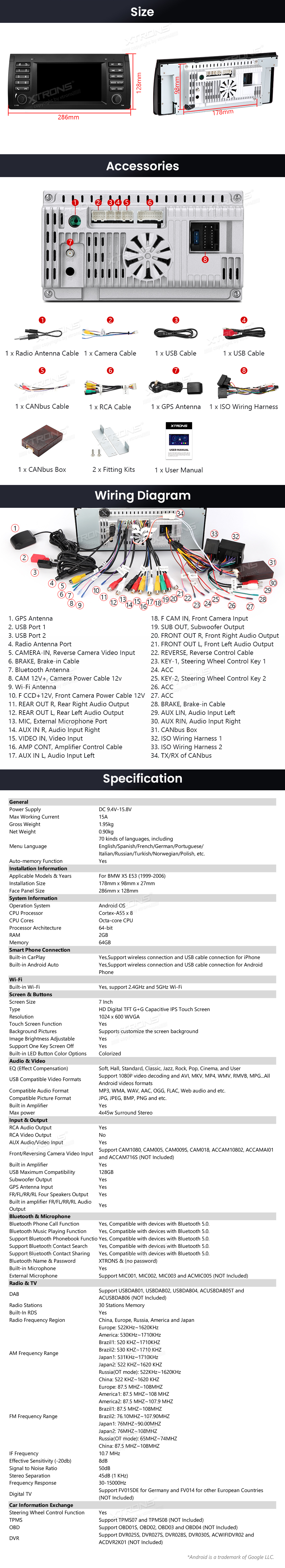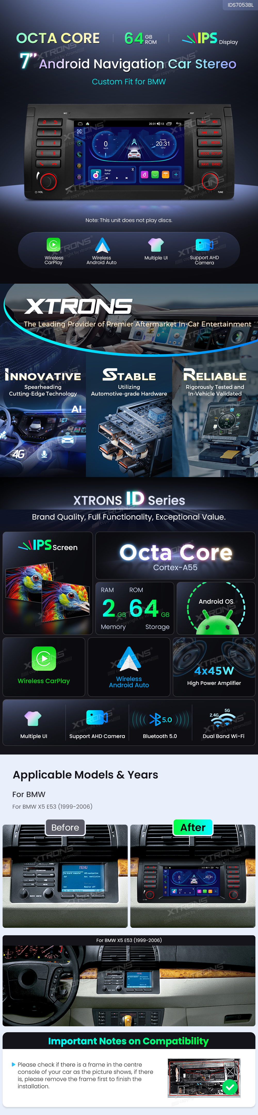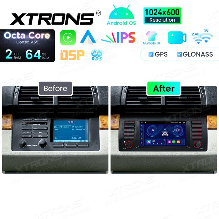 7-Zoll-Octa-Core-Autoradio mit 64 GB Speicher, IPS-Display, Equalizer, DSP, mehreren Benutzeroberflächen, Android-Navigation für BMW X5 E53 (1999-2006)
