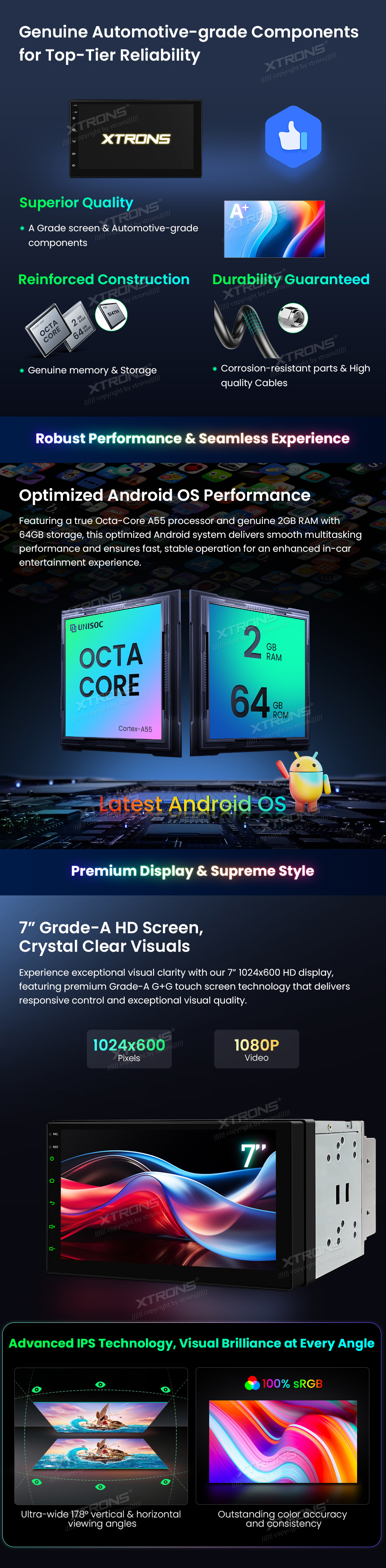 *7-Zoll-HD-Bildschirm der Klasse A, kristallklare Bilder