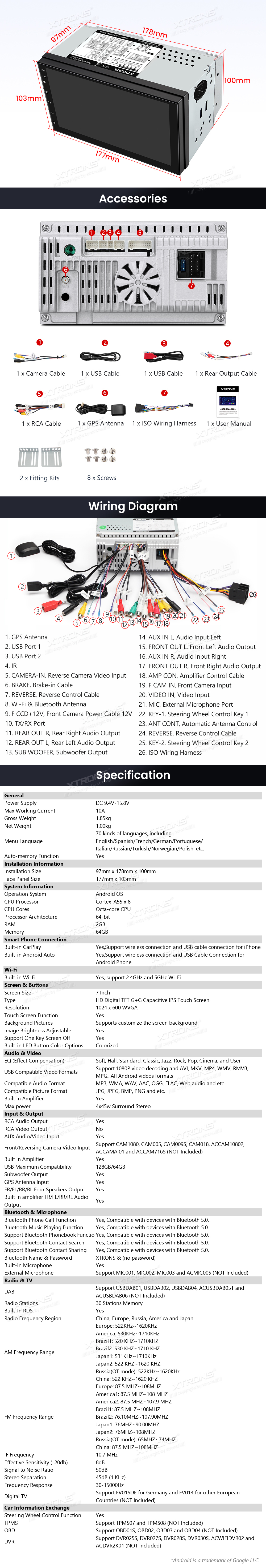 7-Zoll-Octa-Core-Autoradio mit 64 GB IPS-Bildschirm, universellem Doppel-DIN-Android-System