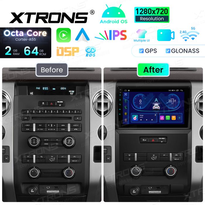 9-Zoll-Octa-Core-Autoradio mit 64 GB Speicher, IPS-Display, Equalizer, digitalem Signalprozessor (DSP), verschiedenen Benutzeroberflächen, Android-Navigation für Ford Raptor/F150 (P415) 2009–2014
