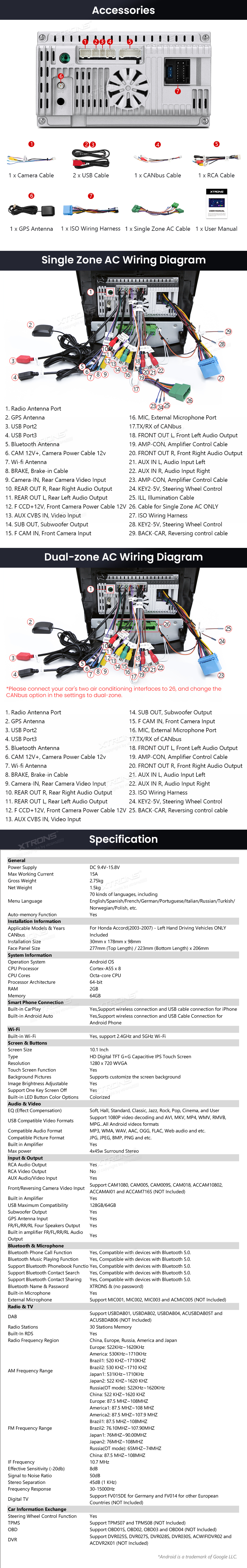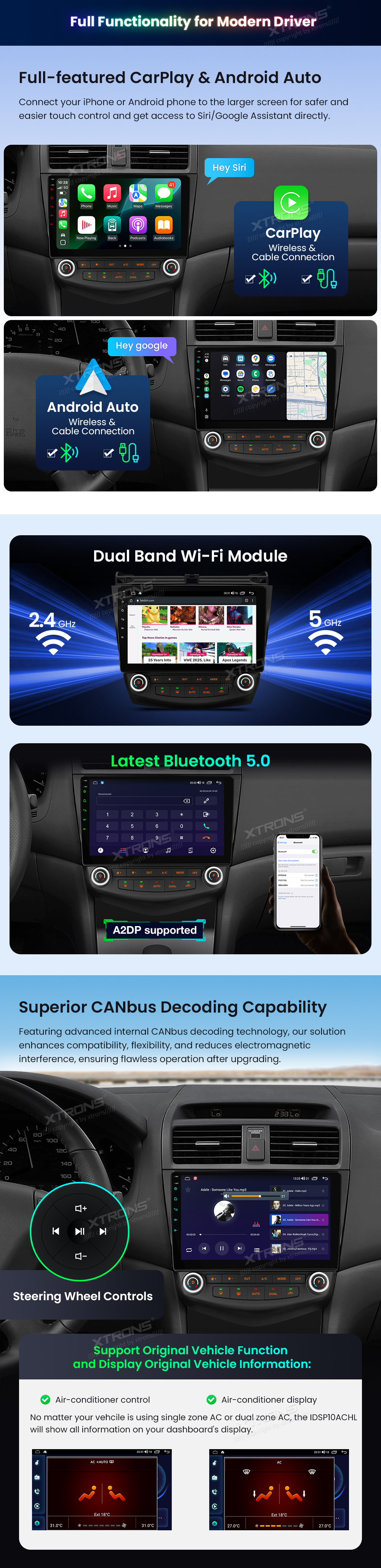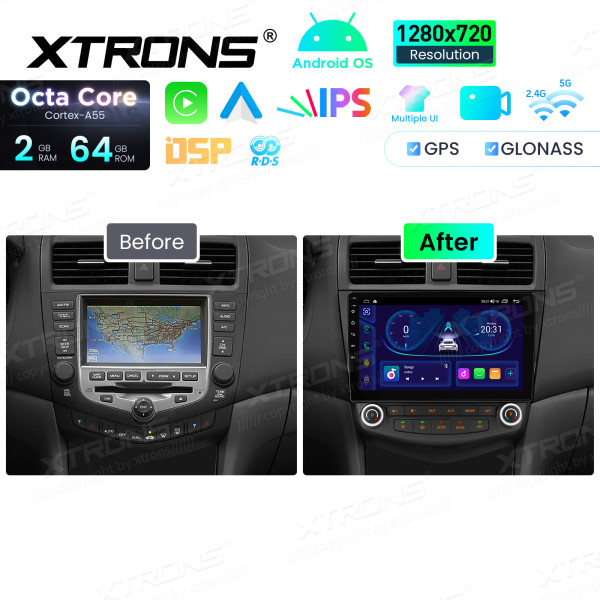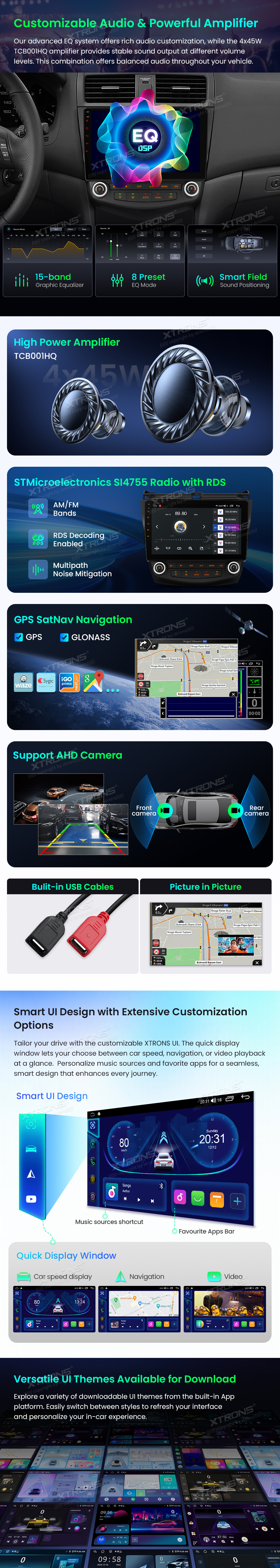 10,1-Zoll-Autoradio mit Octa-Core-Prozessor, 64 GB Speicher, IPS-Display, Equalizer, DSP, verschiedenen Benutzeroberflächen, Android-Navigation für Honda Accord (2003–2007), Linkslenker