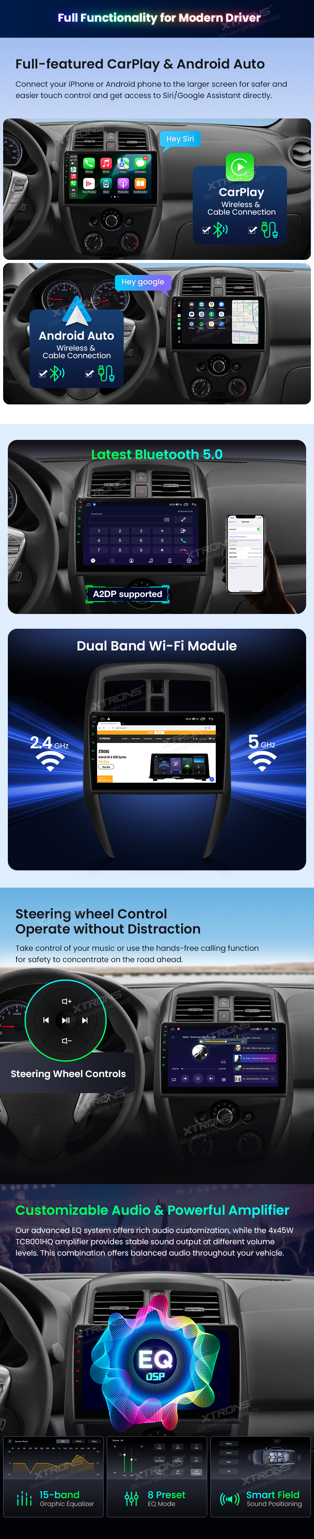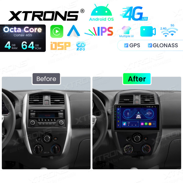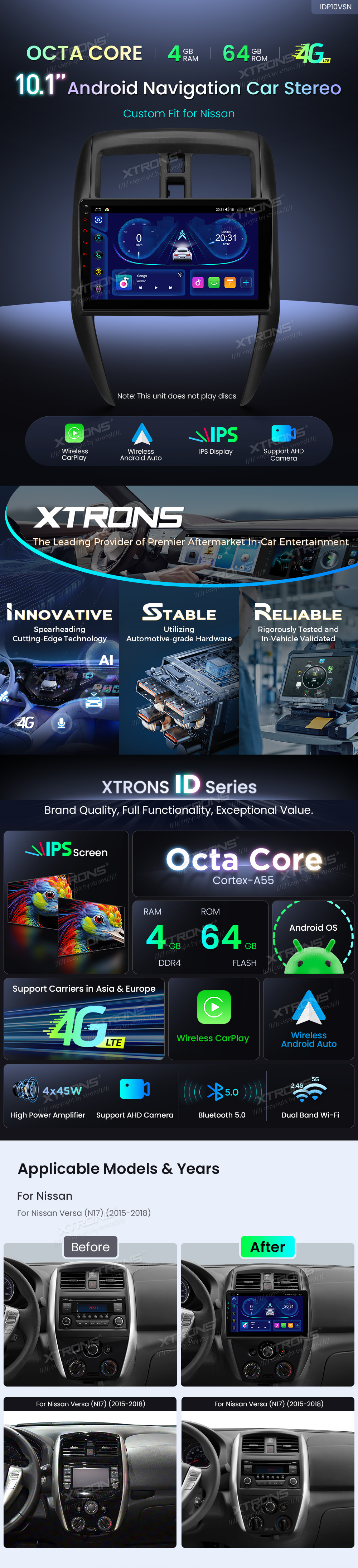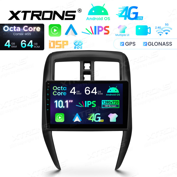 10,1 Zoll Autoradio mit 4 GB RAM und 64 GB internem Speicher, Octa-Core-Prozessor, IPS-Display, Equalizer, DSP, 4G, Android und Navigation für Nissan Versa (N17) 2015–2018