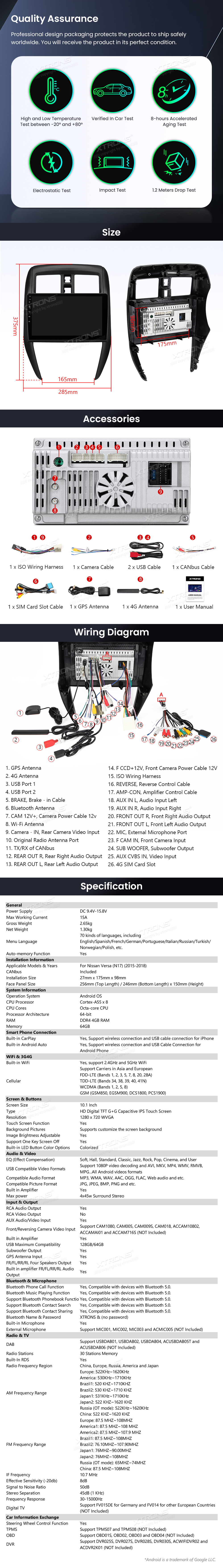 * Optionale Funktionen (zusätzliches Zubehör erforderlich): OBD, Kamera, DVR, DAB, TPMS, Tastatur und Mikrofon