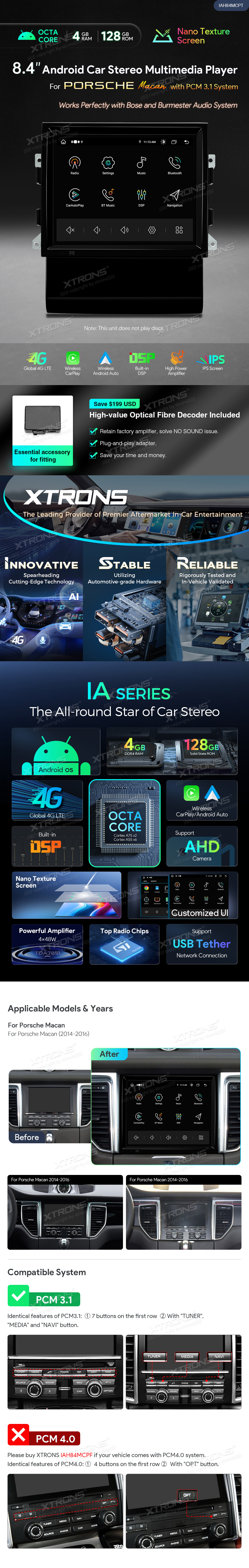 8,4″ Octa-Core 4+128GB Nano-Textur-Bildschirm Android Autoradio Multimedia-Player für Porsche Macan mit PCM 3.1 System