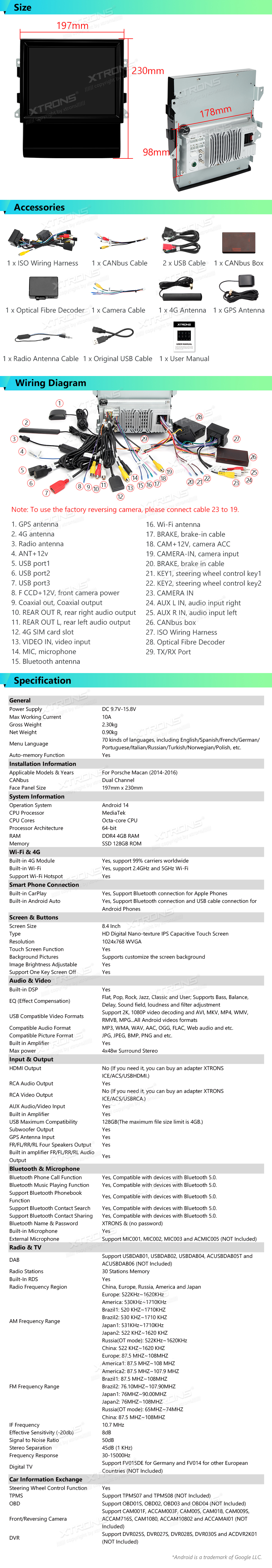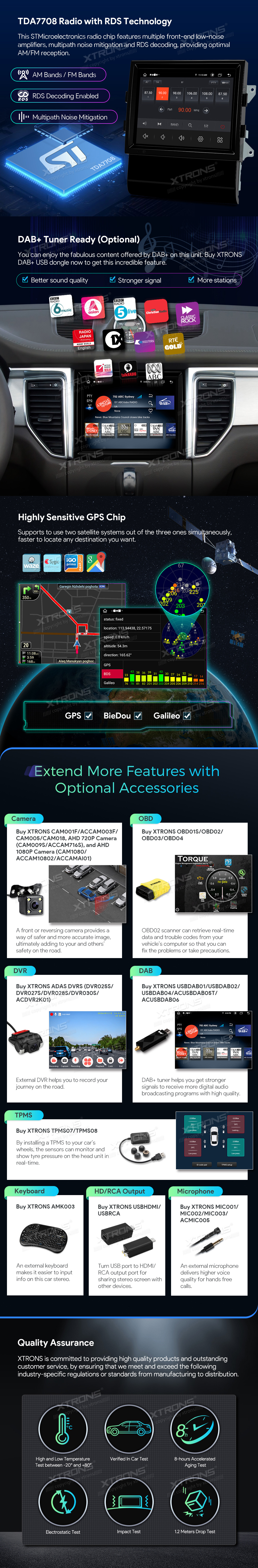 – Kamera, OBD, DVR, DAB, TPMS, Tastatur, HD/RCA-Ausgang und Mikrofon