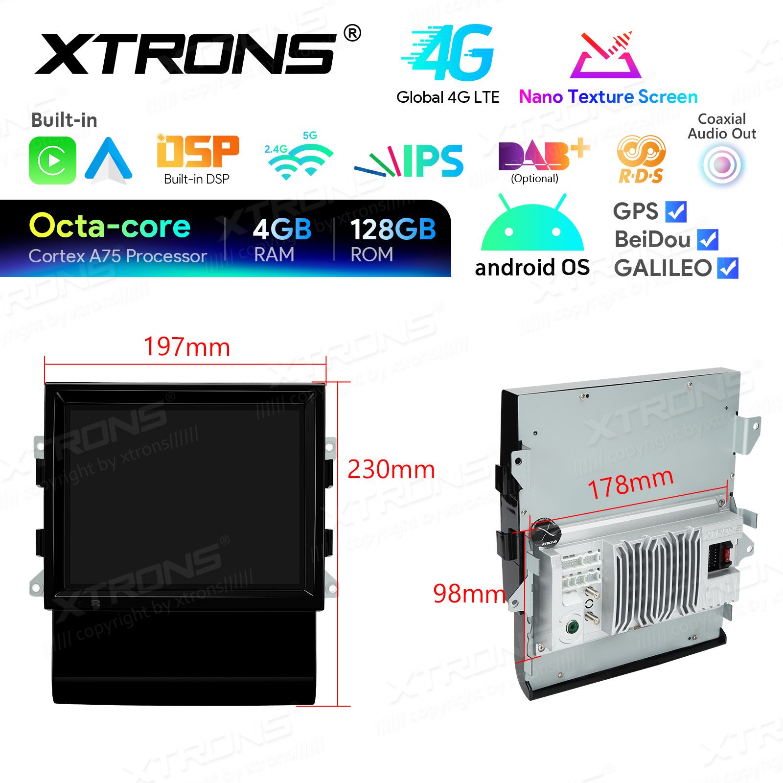 – Kamera, OBD, DVR, DAB, TPMS, Tastatur, HD/RCA-Ausgang und Mikrofon