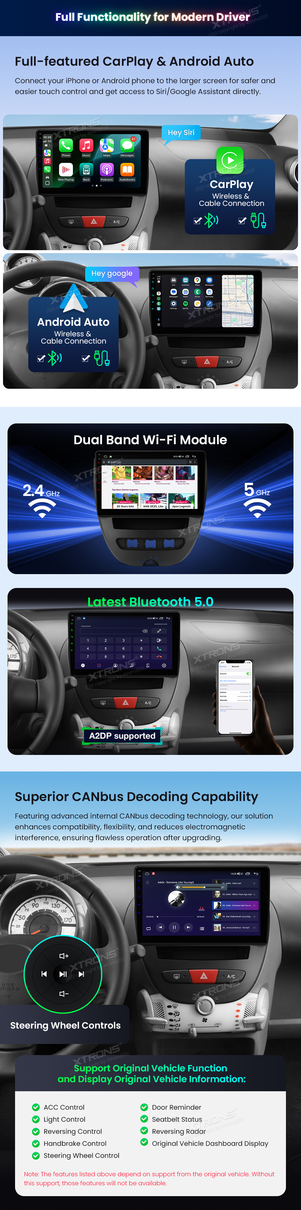 – Unterstützung der Original-Fahrzeugfunktionen und Anzeige der Original-Fahrzeuginformationen