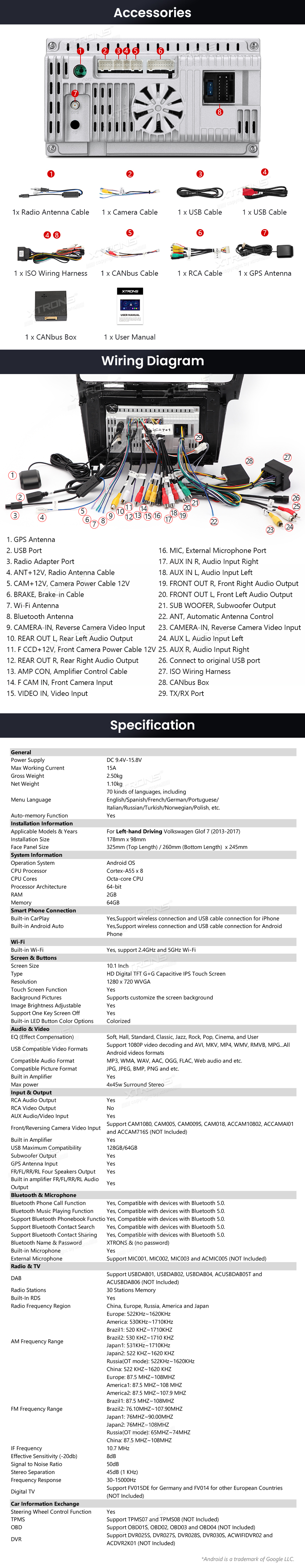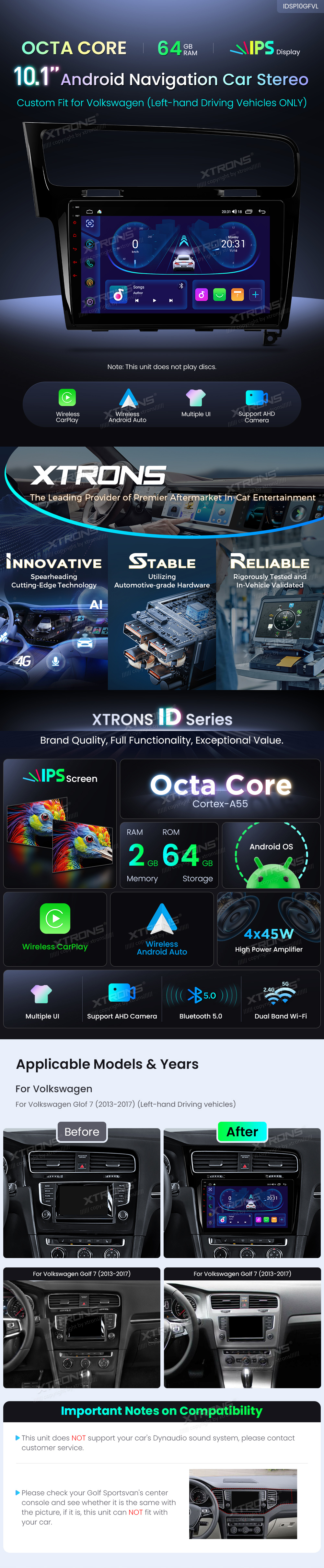 10,1-Zoll-Octa-Core-Autoradio mit 64 GB IPS-Display, Equalizer, DSP, verschiedenen Benutzeroberflächen, Android-Navigation für Volkswagen Golf 7 (2013–2017, Linkslenker)