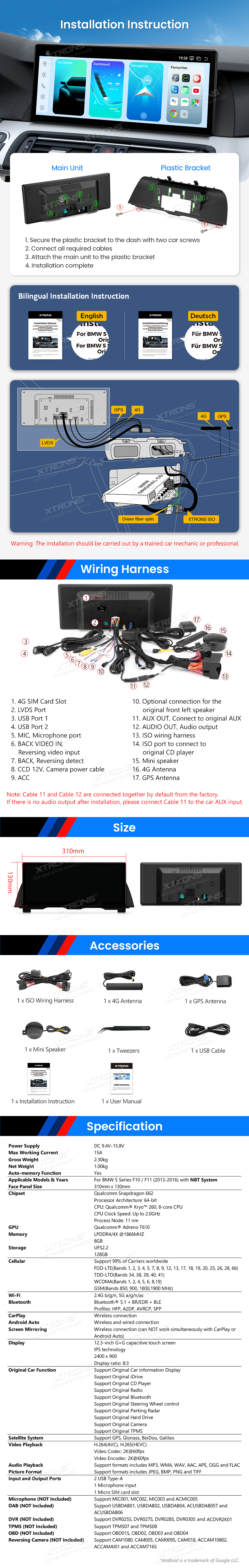 Android Multimedia Player Xtrons für BMW 5er F10/F11 NBT-System 8/128 GB