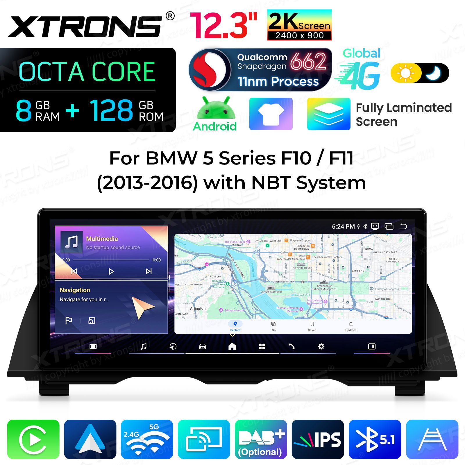Android Multimedia Player Xtrons für BMW 5er F10/F11 NBT-System 8/128 GB