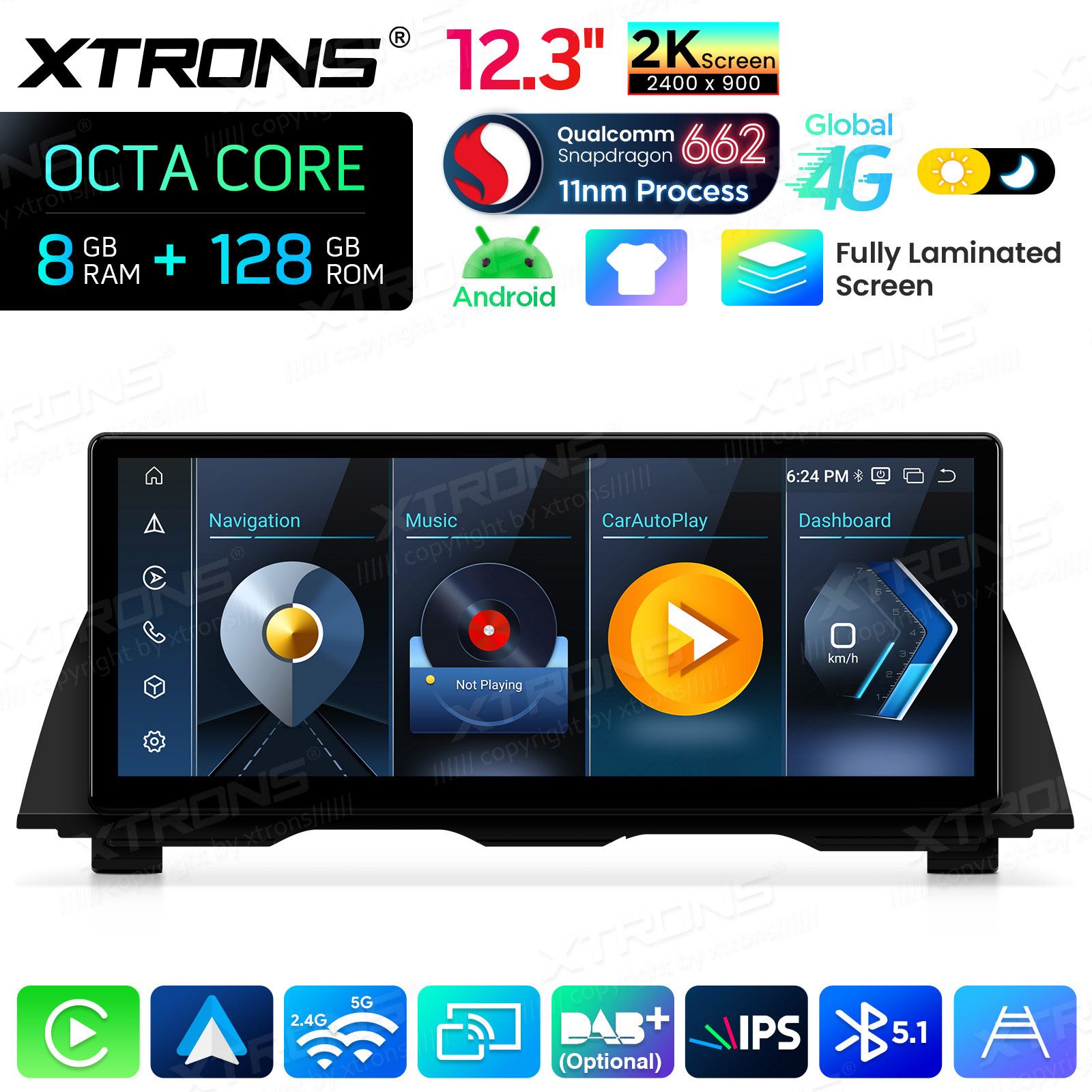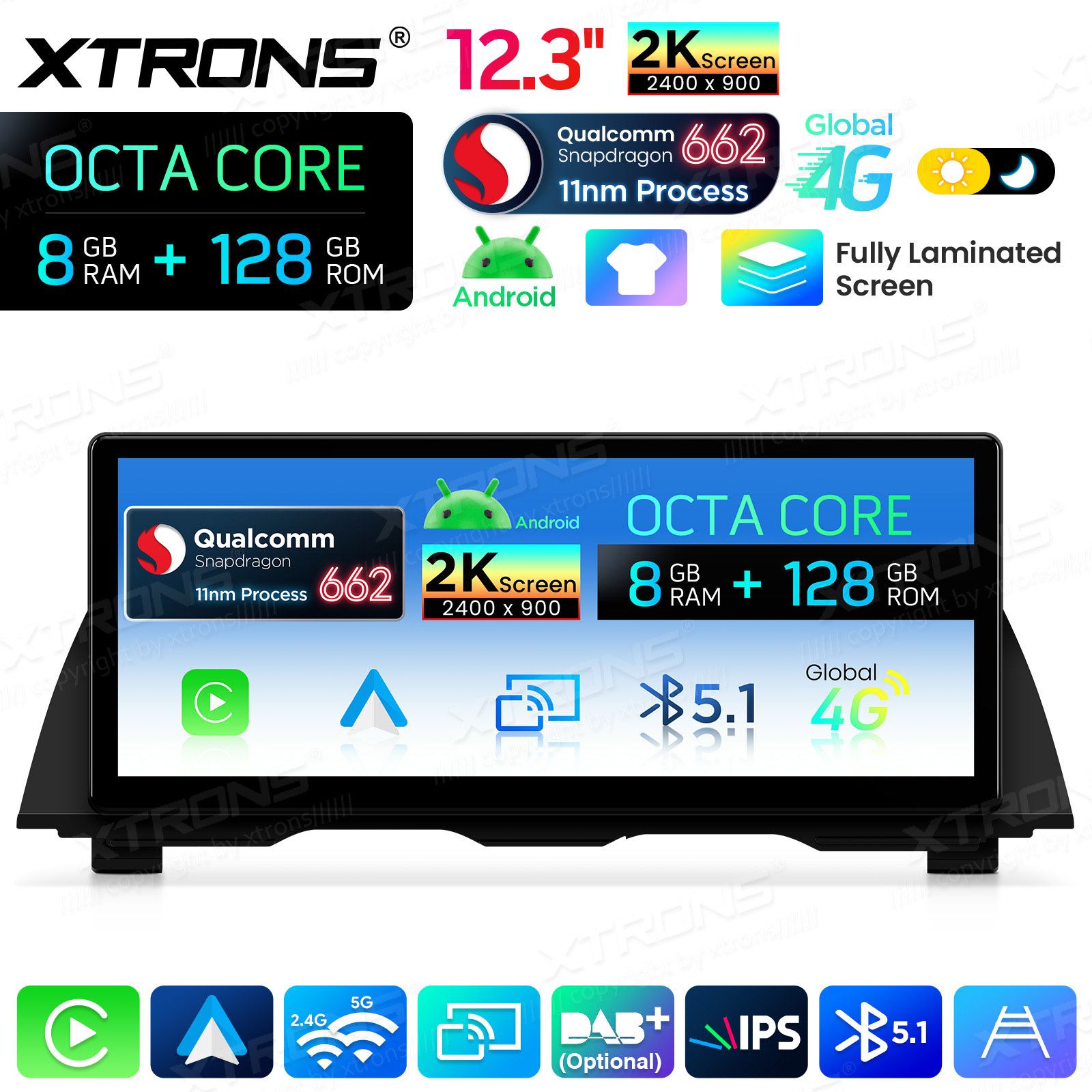 12,3 Zoll 8+128 GB Qualcomm 662 2K IPS-Volllaminiertes Display Global 4G Android Autoradio für BMW 5er F10/F11 NBT-System