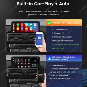 Es ermöglicht Ihnen, das iPhone und Android, intelligent und sicher in Ihrem Auto zu verwenden. ermöglicht es Ihnen, die Navigation zu verwenden, Anrufe zu tätigen, Nachrichten zu senden und zu empfangen und Musik zu hören, während Sie konzentriert bleiben, setzen Sie den Telefon bildschirm in den Player.