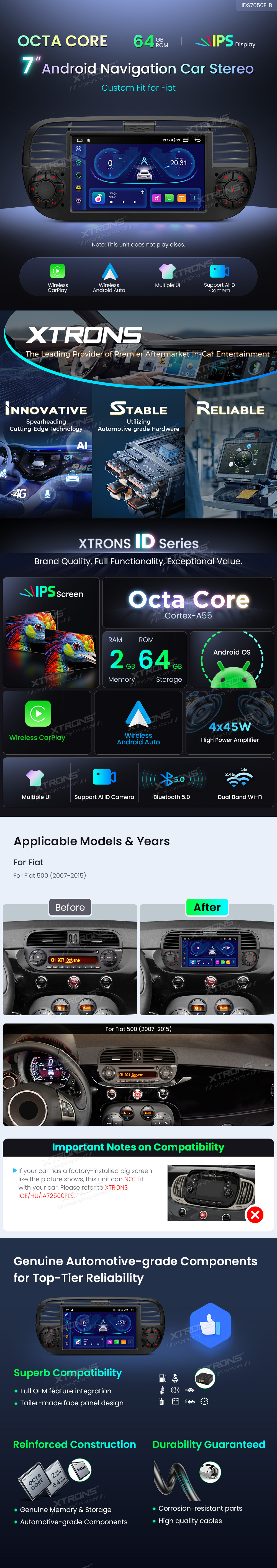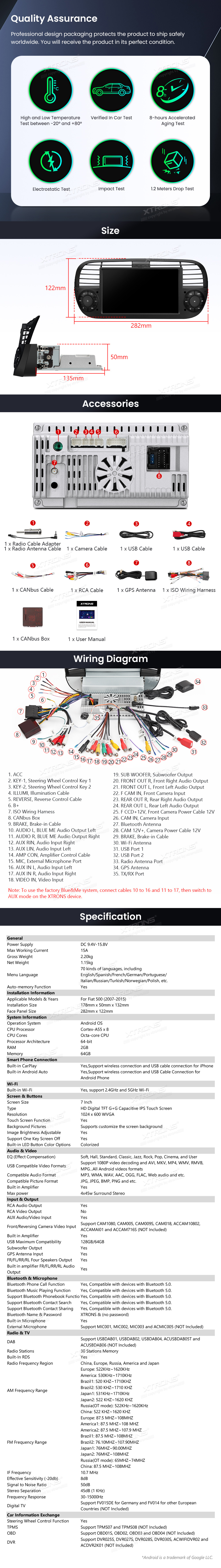 7 Zoll Octa Core 64 GB IPS-Display EQ DSP Mehrere UI Android Navigation Autoradio für Fiat 500 (2007-2015)