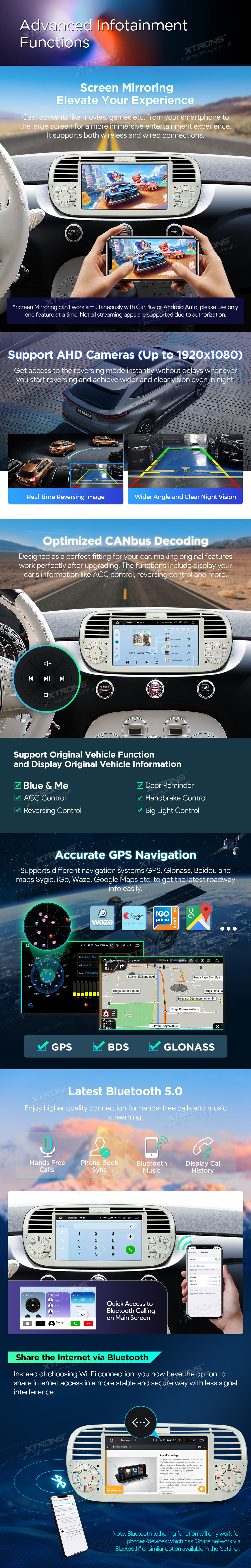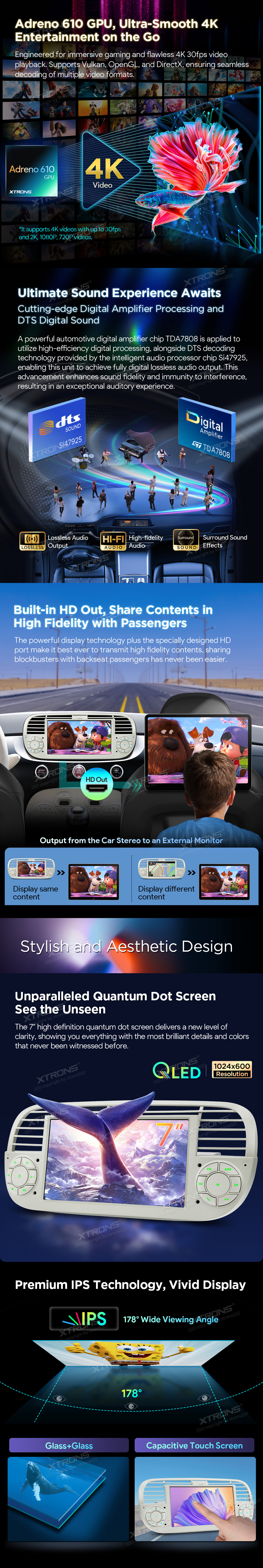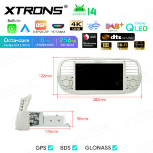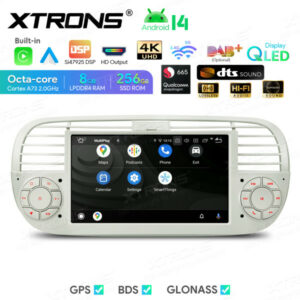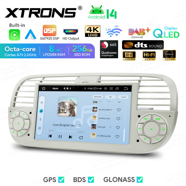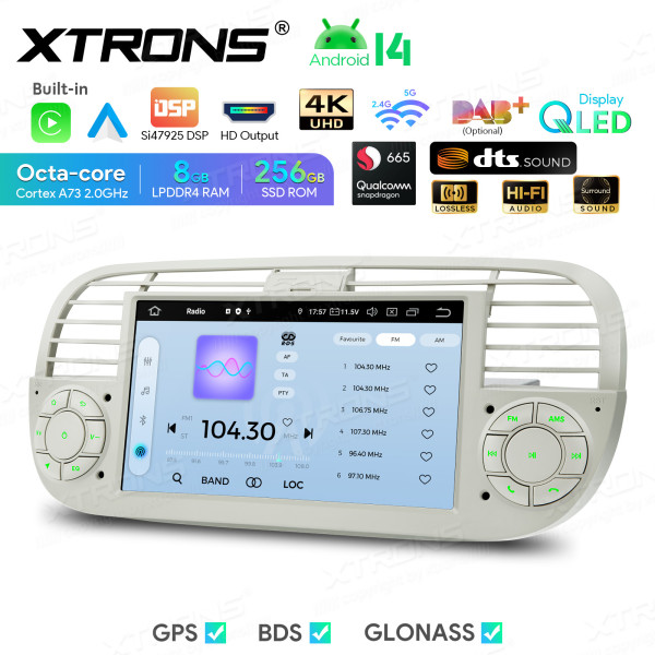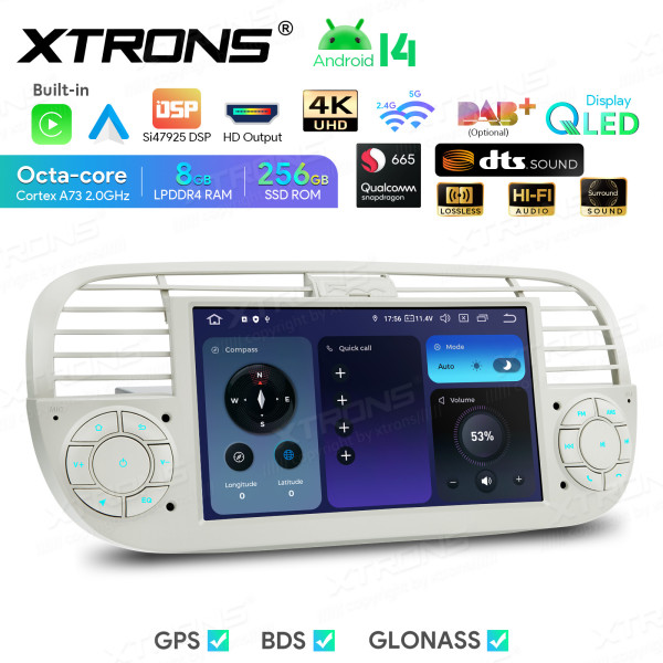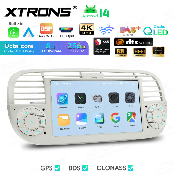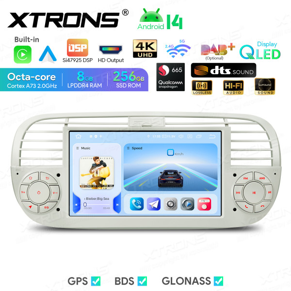7-Zoll-Octa-Core-Autoradio mit Android 14, Navigationssystem, 8 GB RAM (LPDDR4) und 256 GB ROM (SSD) sowie integriertem DTS Digital Sound DSP für Fiat 500