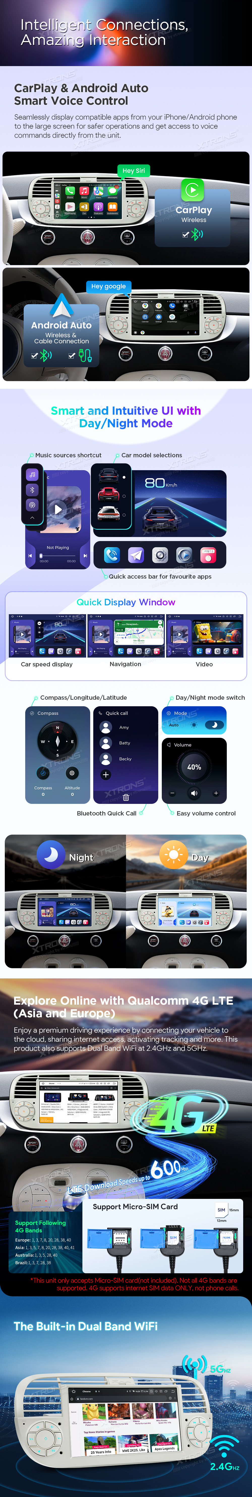 * Integriertes kabelloses CarPlay und kabelgebundenes sowie kabelloses Android Auto