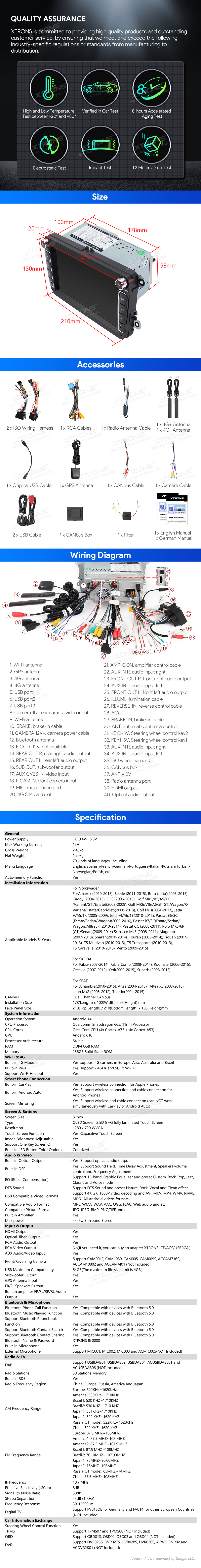 8-Zoll-Octa-Core-Autoradio mit Qualcomm Snapdragon 665, 8 GB RAM und 256 GB SSD, QLED-Display, DTS, DSP und Android-Navigationssystem für VW/Skoda/Seat
