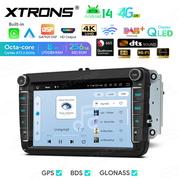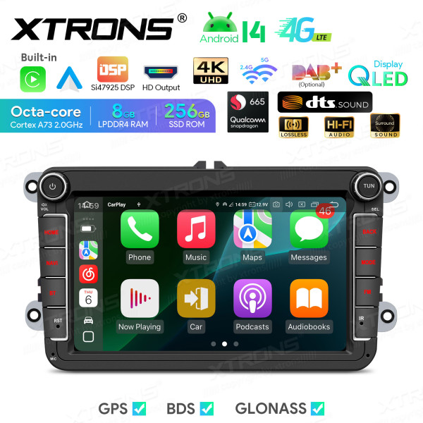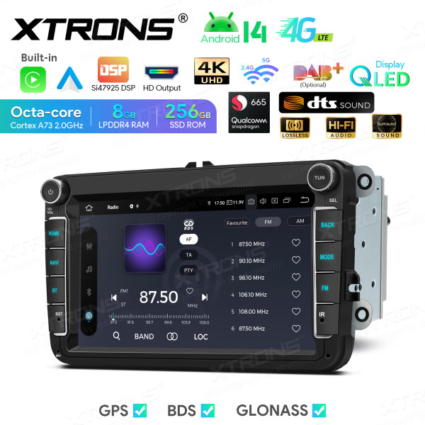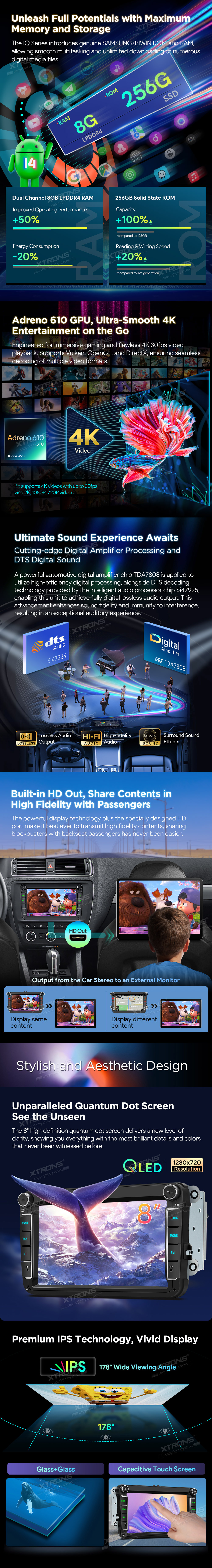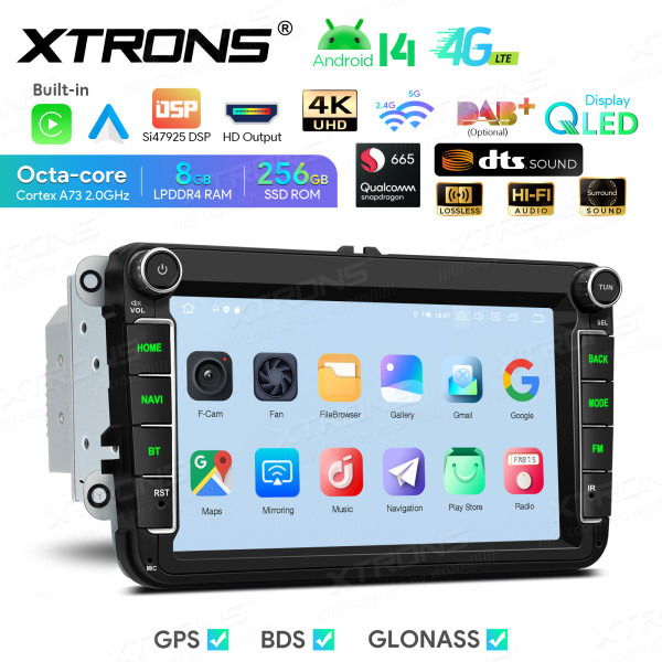 8-Zoll-Octa-Core-Autoradio mit Qualcomm Snapdragon 665, 8 GB RAM und 256 GB SSD, QLED-Display, DTS, DSP und Android-Navigationssystem für VW/Skoda/Seat